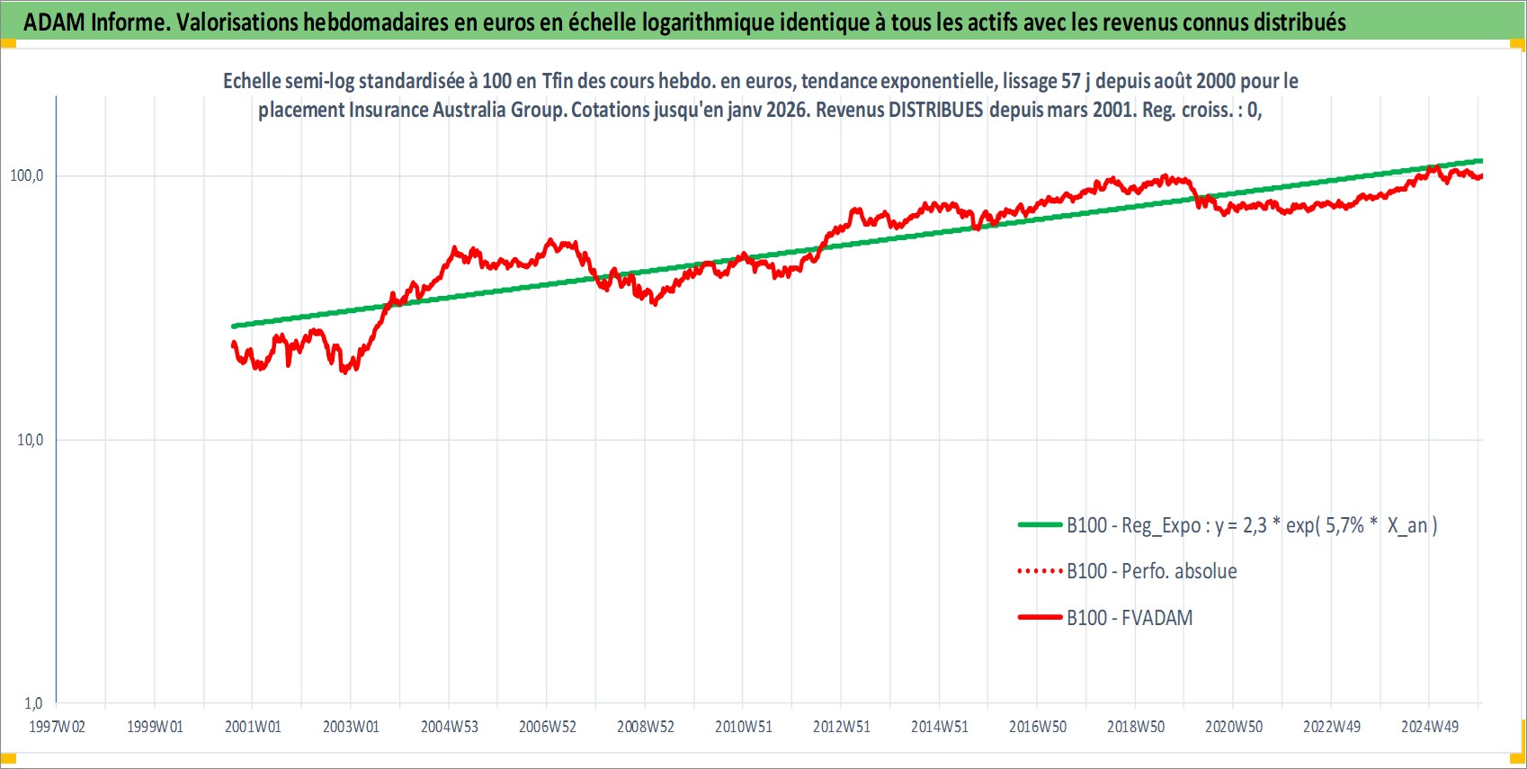 Site dédié aux investisseursPage dédiée sur site financeAnalyse des valorisations hebdomadaires de l'action Insurance Australia Group Ltd. Cet actif est cote en AUD. Les valorisations sont en contrevaleur EURO et couvrent les semaines 2000W32 a 2026W01. Les revenus de cet actif financier sont pris en compte depuis la semaine 2001W12. La note globale ESG de cet actif est estimee a 10.0 (apres rebasage entre 0 et 20).