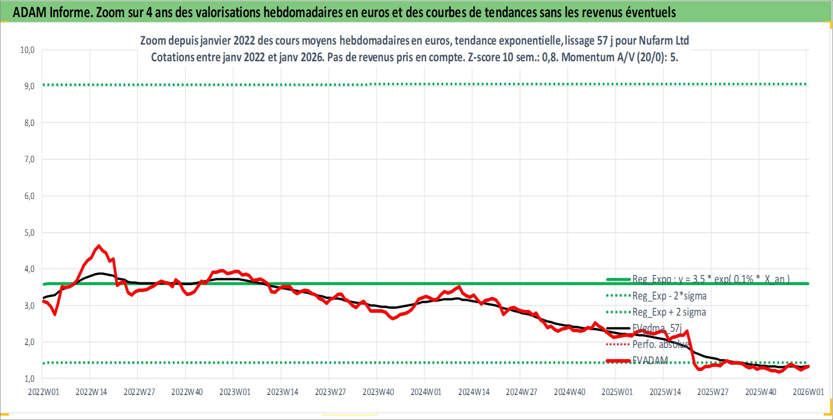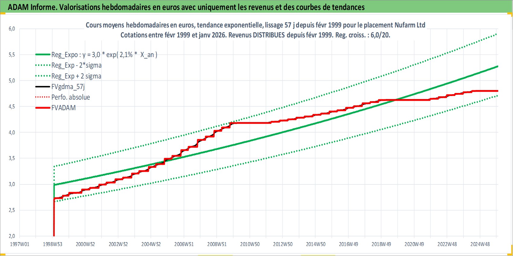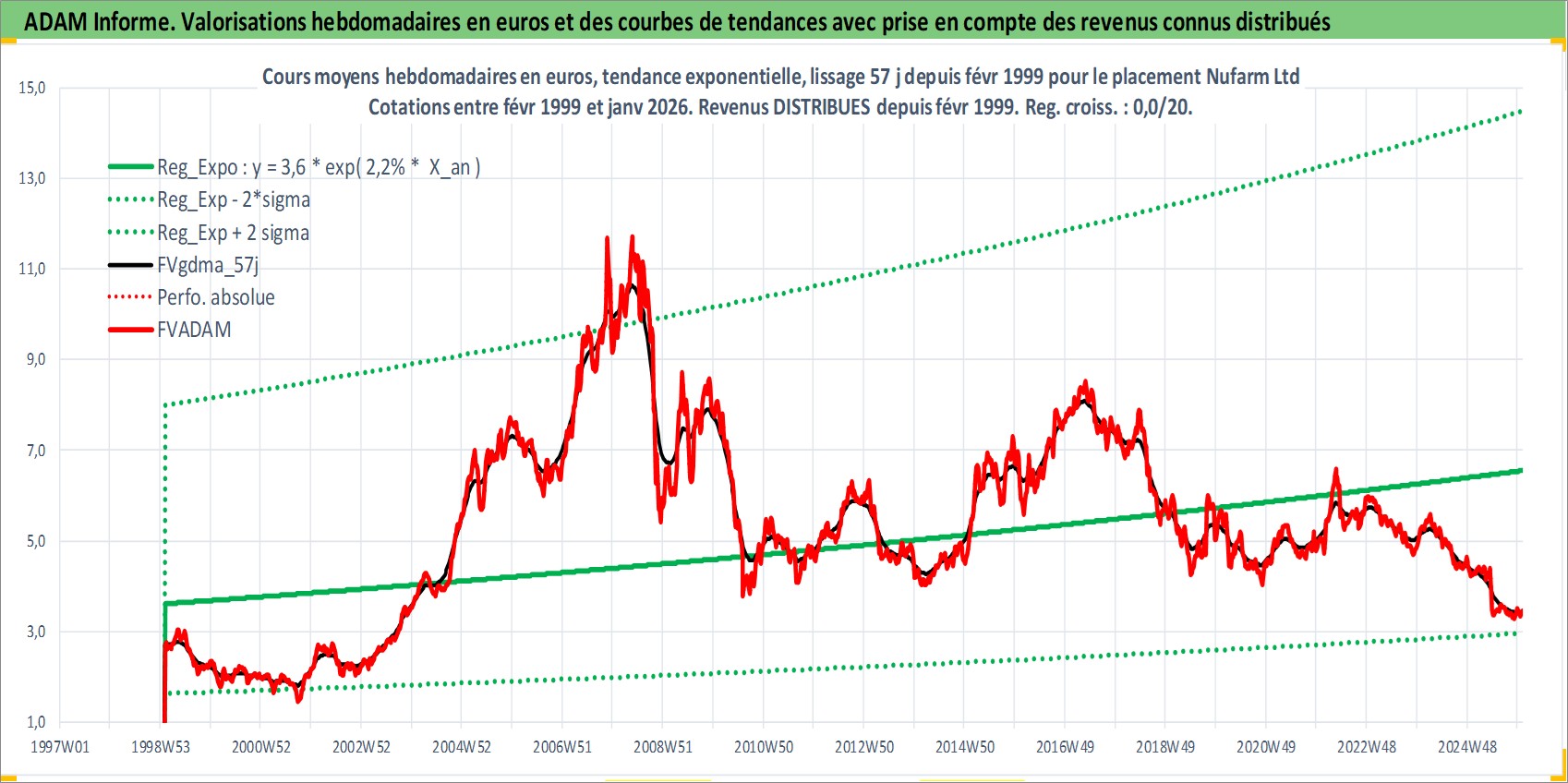 Site dédié aux investisseursPage dédiée sur site financeAnalyse des valorisations hebdomadaires de l'action Nufarm Ltd. Cet actif est cote en AUD. Les valorisations sont en contrevaleur EURO et couvrent les semaines 1999W05 a 2026W01. Les revenus de cet actif financier sont pris en compte depuis la semaine 1999W06. La note ESG de cet actif n'est pas connue.
