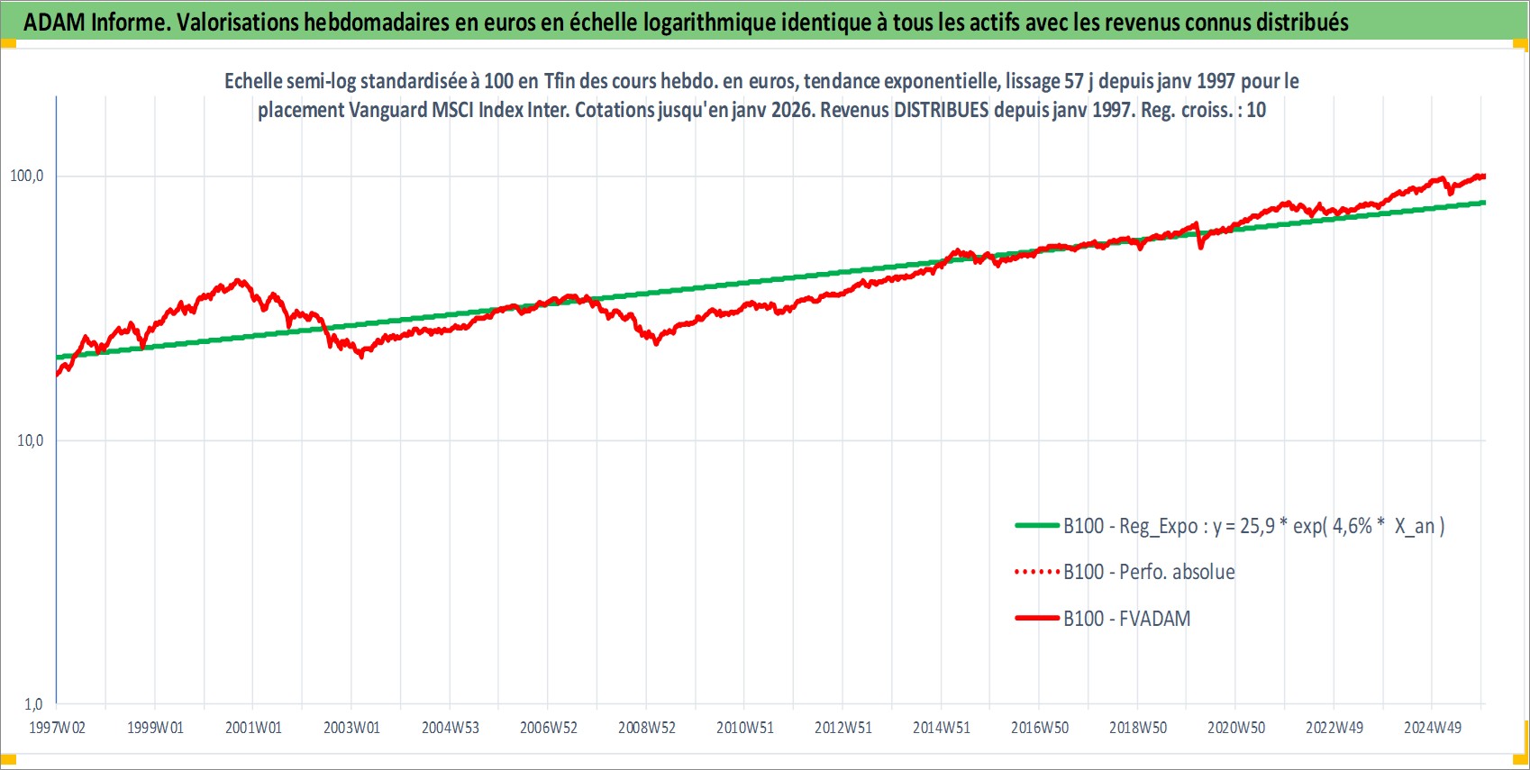 Site dédié aux investisseursPage dédiée sur site financeAnalyse des valorisations hebdomadaires du fonds Vanguard MSCI Index International Shares ETF Dist. Cet actif est cote en AUD. Les valorisations sont en contrevaleur EURO et couvrent les semaines 1997W01 a 2026W01. Les revenus de cet actif financier sont pris en compte depuis la semaine 1997W02. La note ESG de cet actif n'est pas connue.
