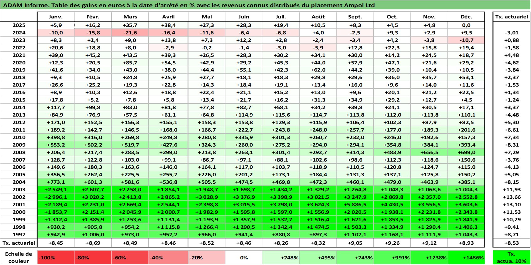 Dernière perfo 10 ans en %