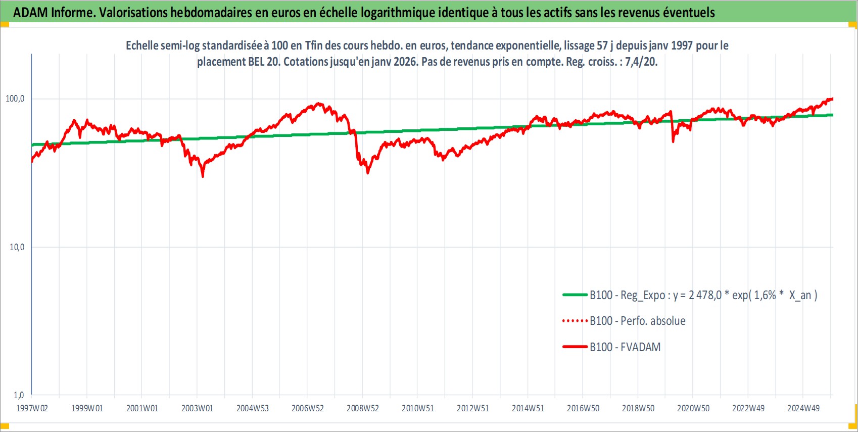Site dédié aux investisseursPage dédiée sur site financeAnalyse des valorisations hebdomadaires de l'actif BEL 20. Cet actif est cote en EUR. Les valorisations couvrent les semaines 1997W01 a 2026W01. Les revenus de cet actif financier ne sont pas connus car non existants ou non disponibles sur le site Yahoo Finance. La note ESG de cet actif n'est pas connue.
