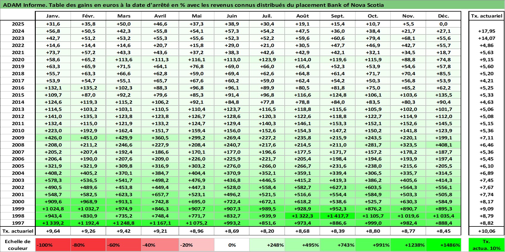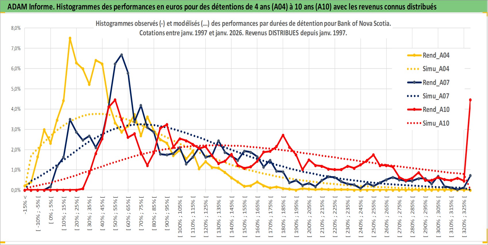 Site dédié aux investisseursPage dédiée sur site financeAnalyse des valorisations hebdomadaires de l'action Bank of Nova Scotia. Cet actif est cote en CAD. Les valorisations sont en contrevaleur EURO et couvrent les semaines 1997W01 a 2026W01. Les revenus de cet actif financier sont pris en compte depuis la semaine 1997W01. La note globale ESG de cet actif est estimee a 10.0 (apres rebasage entre 0 et 20).