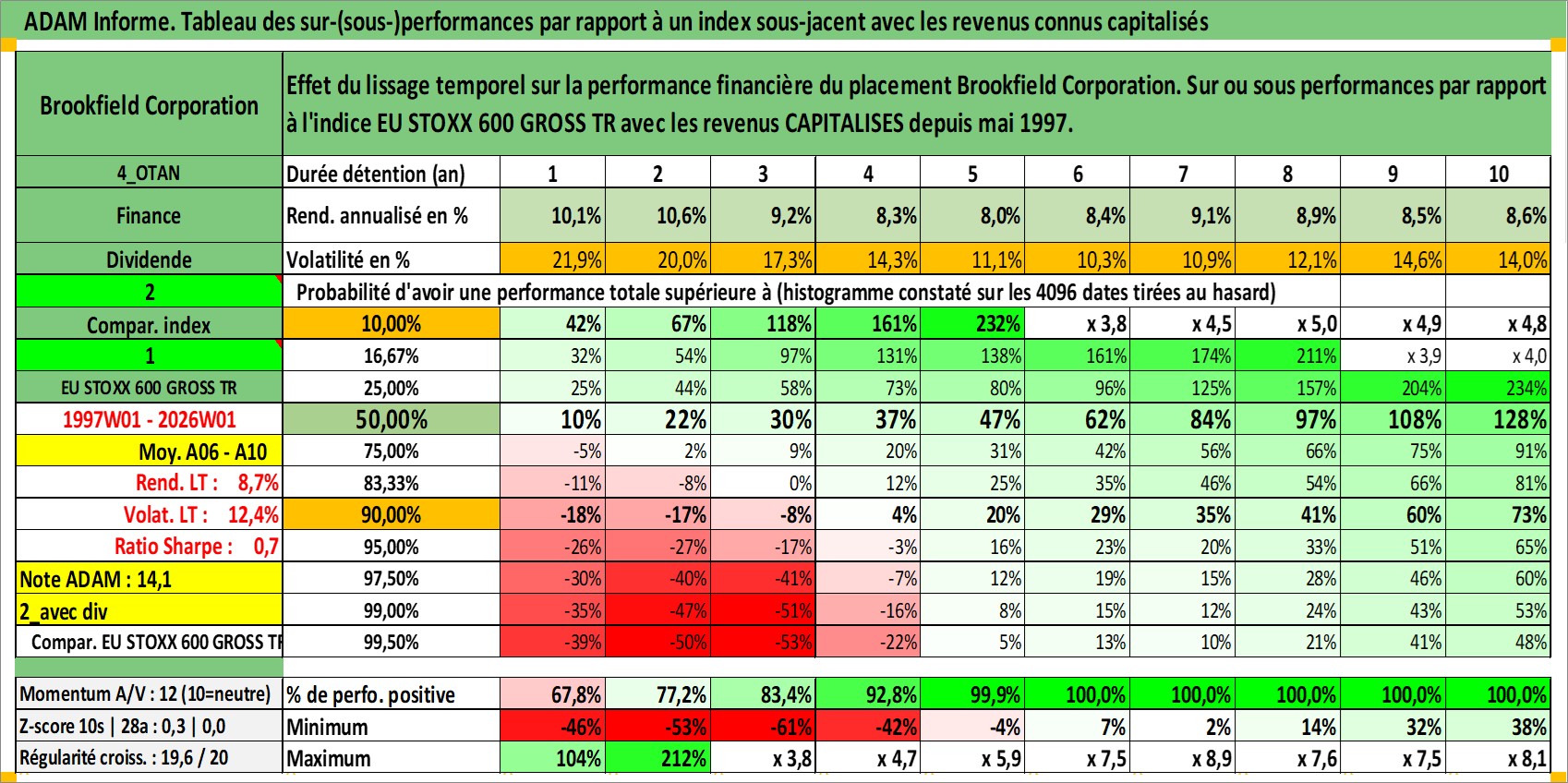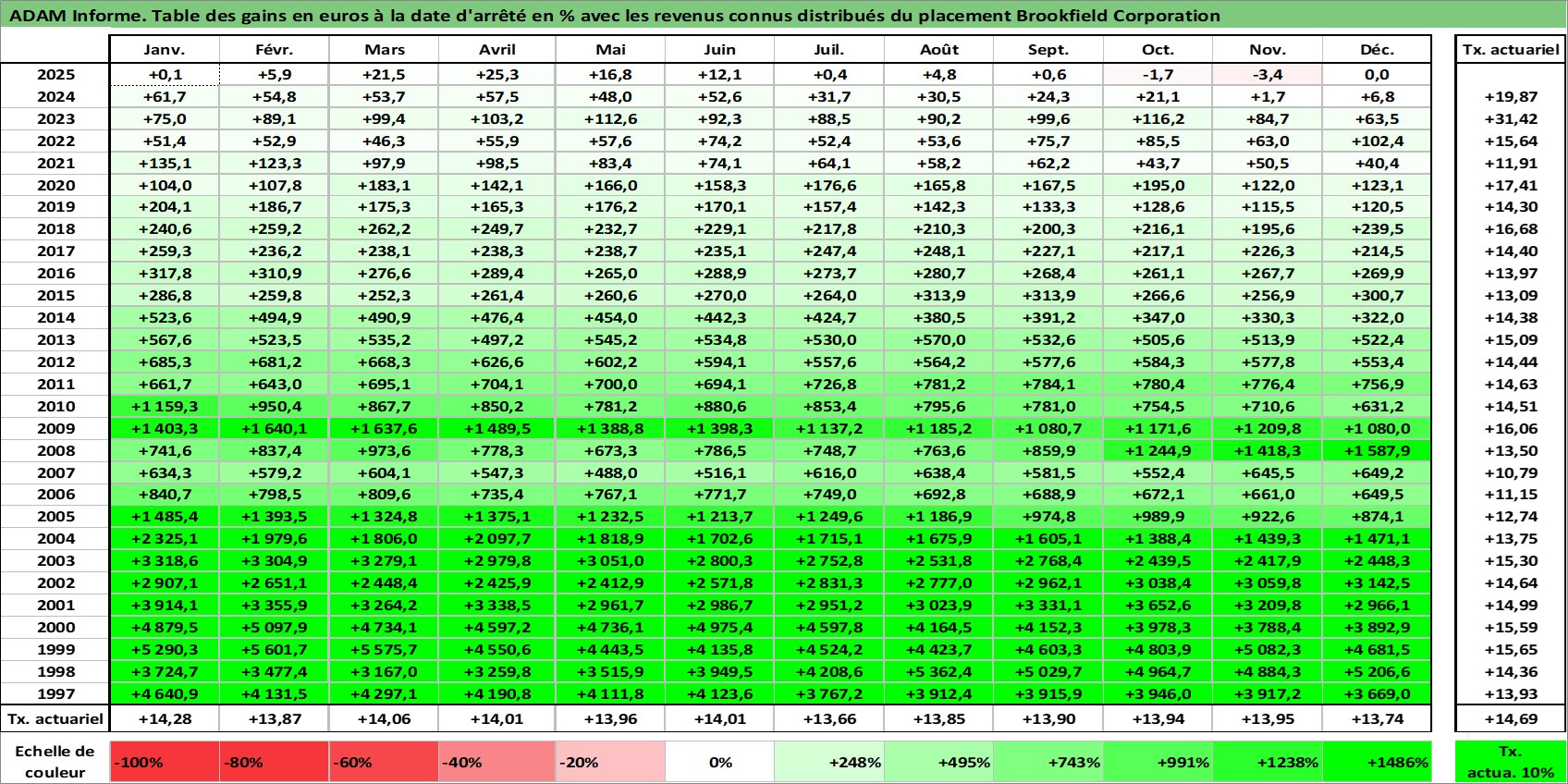 Site dédié aux investisseursPage dédiée sur site financeAnalyse des valorisations hebdomadaires de l'action Brookfield Corporation. Cet actif est cote en CAD. Les valorisations sont en contrevaleur EURO et couvrent les semaines 1997W01 a 2026W01. Les revenus de cet actif financier sont pris en compte depuis la semaine 1997W20. La note ESG de cet actif n'est pas connue.