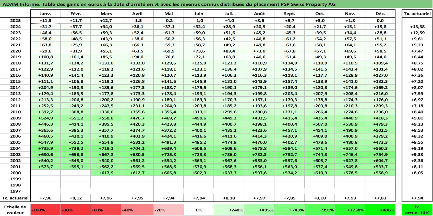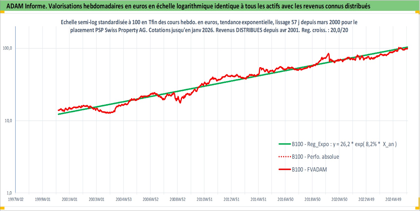 Site dédié aux investisseursPage dédiée sur site financeAnalyse des valorisations hebdomadaires de l'action PSP Swiss Property AG. Cet actif est cote en CHF. Les valorisations sont en contrevaleur EURO et couvrent les semaines 2000W10 a 2026W01. Les revenus de cet actif financier sont pris en compte depuis la semaine 2001W16. La note ESG de cet actif n'est pas connue.