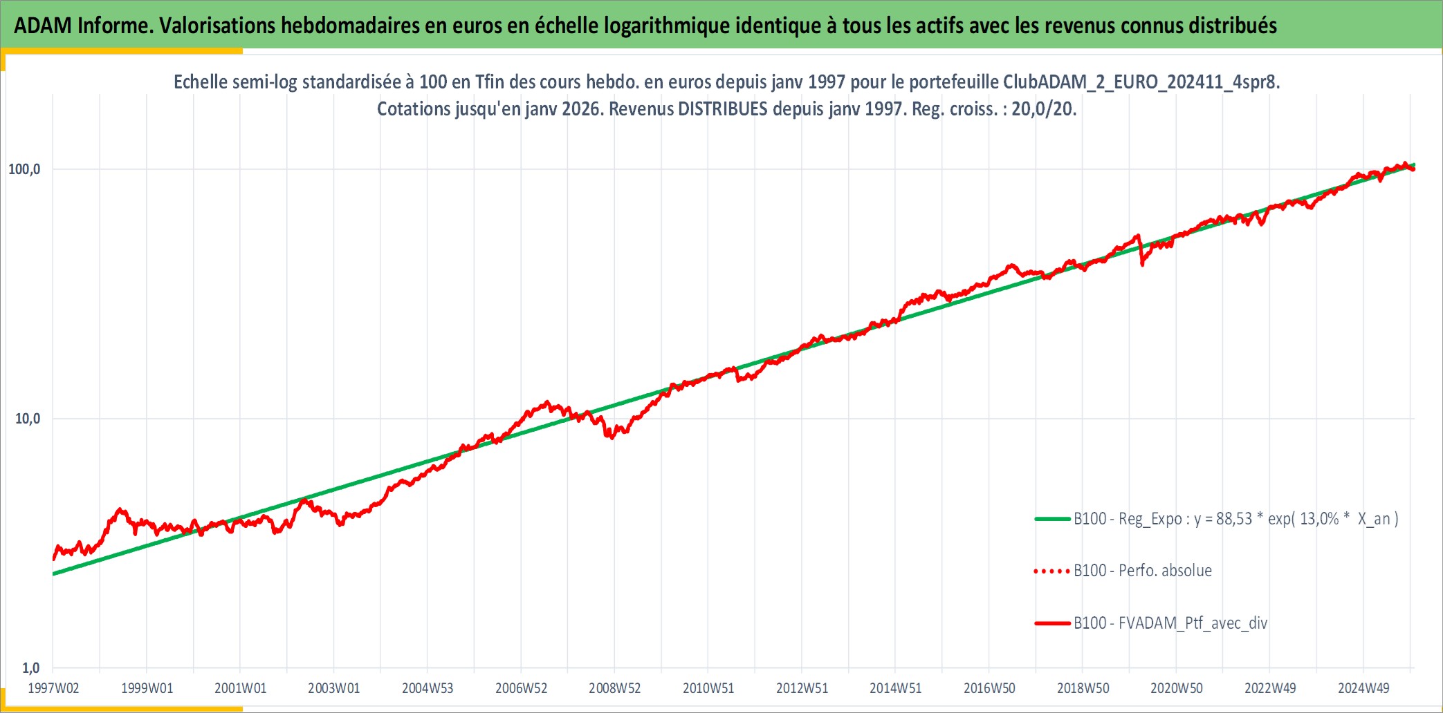 Site dédié aux investisseursPage dédiée sur site financeAnalyse des valorisations hebdomadaires du portefeuille ClubADAM_2_EURO_202411_4spr8_6actifs avec un profil P6_PurActions. Ce portefeuille est cote en EUR. Les valorisations couvrent les semaines 1997W01 a 2026W01. Les revenus de cet actif financier sont pris en compte depuis la semaine 1997W01. La note globale ESG de cet actif est estimee a 11.4 (apres rebasage entre 0 et 20).
