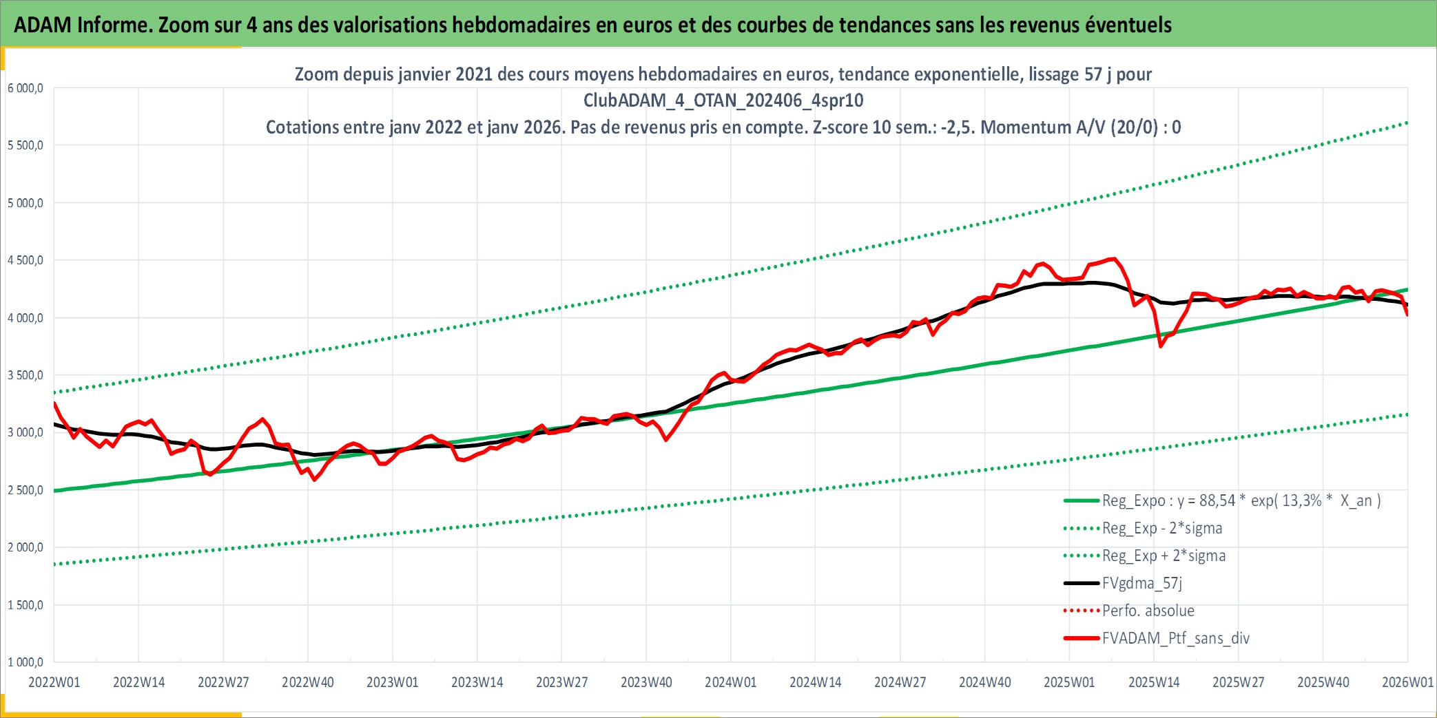 Site dédié aux investisseursPage dédiée sur site financeAnalyse des valorisations hebdomadaires du portefeuille ClubADAM_4_OTAN_202406_4spr10_24actifs avec un profil P6_PurActions. Ce portefeuille est cote en EUR. Les valorisations couvrent les semaines 1997W01 a 2026W01. Les revenus de cet actif financier sont pris en compte depuis la semaine 1997W01. La note globale ESG de cet actif est estimee a 11.1 (apres rebasage entre 0 et 20).