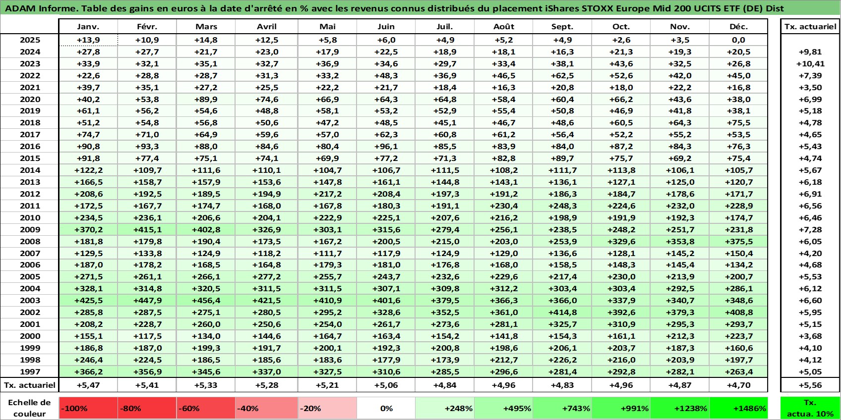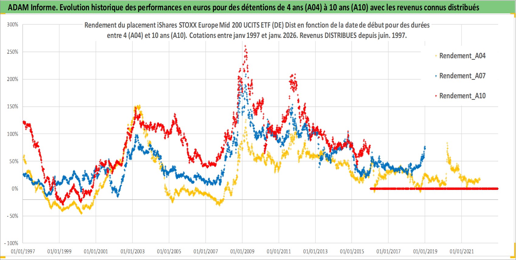 Site dédié aux investisseursPage dédiée sur site financeAnalyse des valorisations hebdomadaires du fonds iShares STOXX Europe Mid 200 UCITS ETF (DE) Dist. Cet actif est cote en EUR. Les valorisations couvrent les semaines 1997W01 a 2026W01. Les revenus de cet actif financier sont pris en compte depuis la semaine 1997W25. La note ESG de cet actif n'est pas connue.