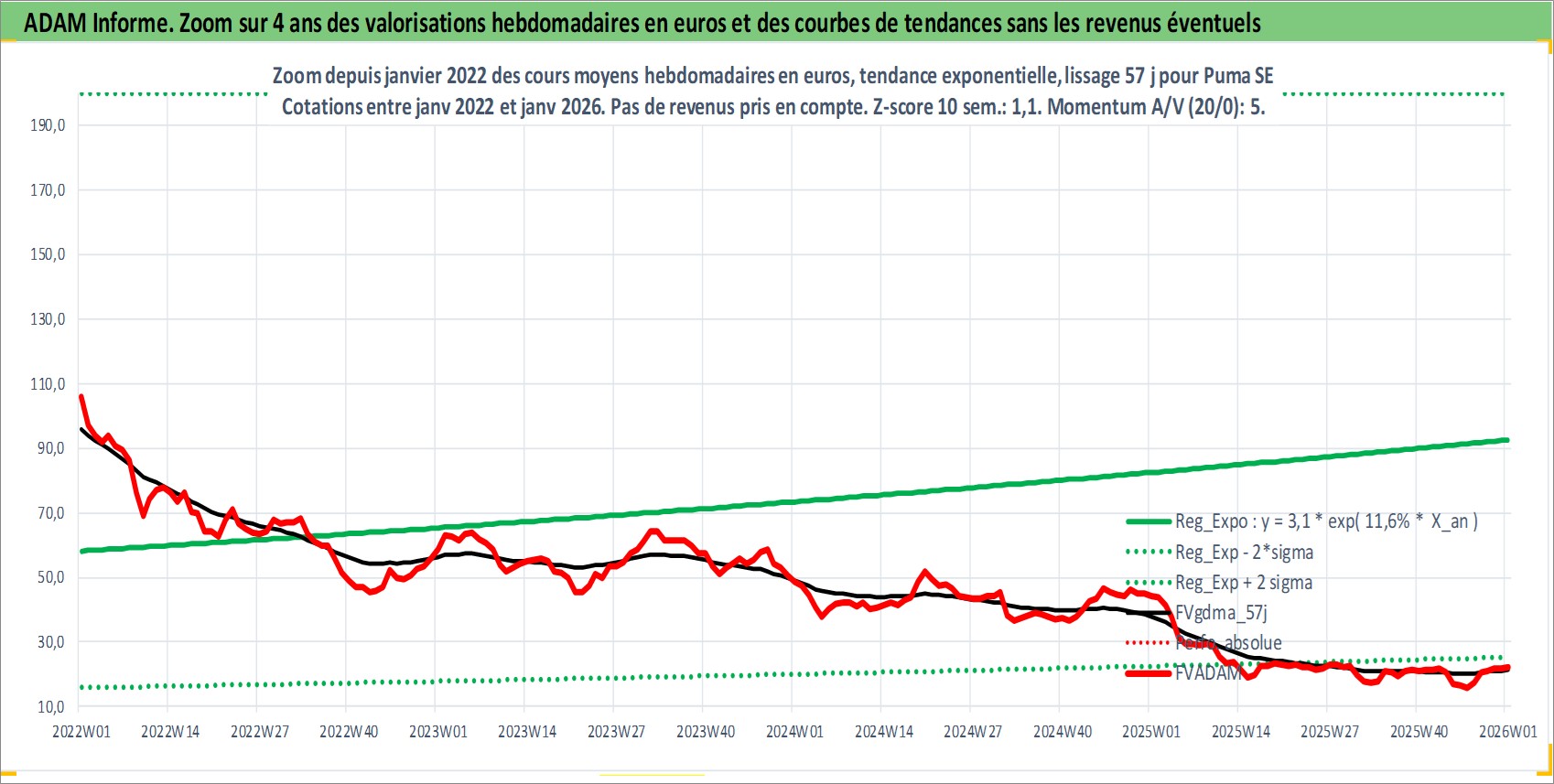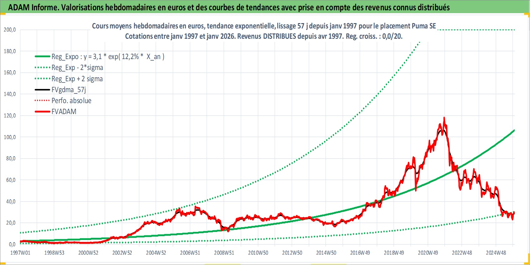Site dédié aux investisseursPage dédiée sur site financeAnalyse des valorisations hebdomadaires de l'action Puma SE. Cet actif est cote en EUR. Les valorisations couvrent les semaines 1997W01 a 2026W01. Les revenus de cet actif financier sont pris en compte depuis la semaine 1997W17. La note ESG de cet actif n'est pas connue.