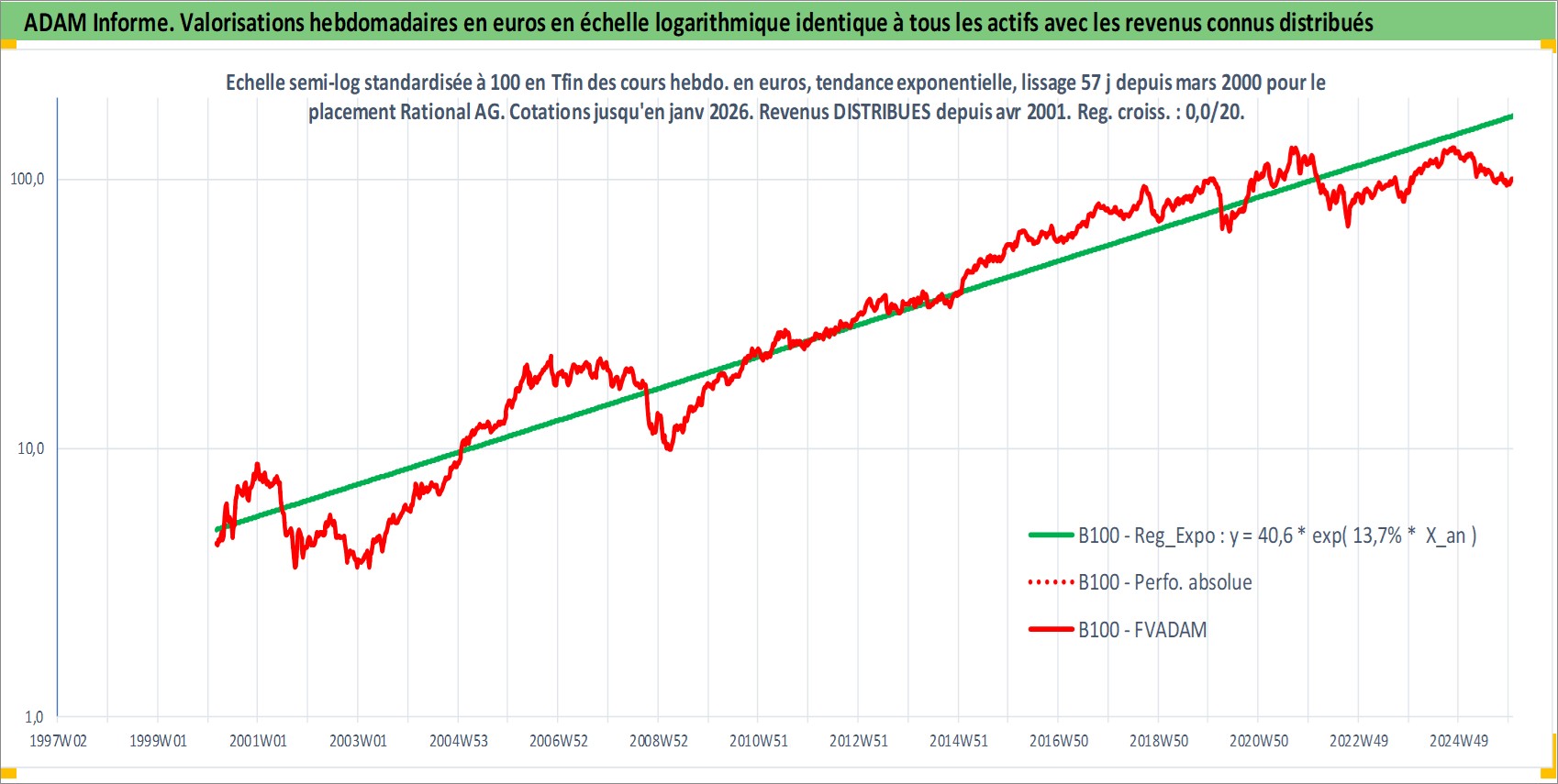 Site dédié aux investisseursPage dédiée sur site financeAnalyse des valorisations hebdomadaires de l'action Rational AG. Cet actif est cote en EUR. Les valorisations couvrent les semaines 2000W10 a 2026W01. Les revenus de cet actif financier sont pris en compte depuis la semaine 2001W18. La note globale ESG de cet actif est estimee a 5.0 (apres rebasage entre 0 et 20).