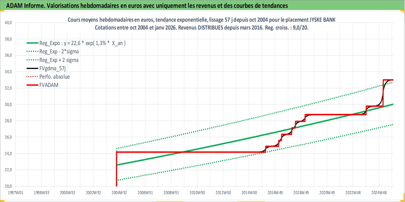 Site dédié aux investisseursPage dédiée sur site financeAnalyse des valorisations hebdomadaires de l'action JYSKE BANK. Cet actif est cote en DKK. Les valorisations sont en contrevaleur EURO et couvrent les semaines 2004W41 a 2026W01. Les revenus de cet actif financier sont pris en compte depuis la semaine 2016W11. La note ESG de cet actif n'est pas connue.