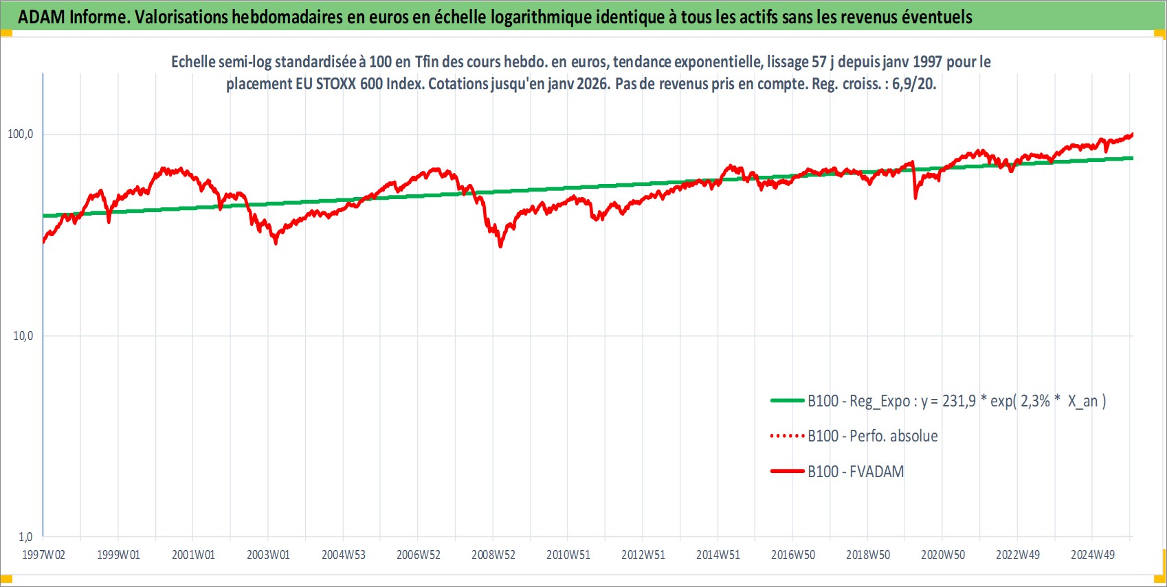 Site dédié aux investisseursPage dédiée sur site financeAnalyse des valorisations hebdomadaires de l'actif EU STOXX 600 Index. Cet actif est cote en EUR. Les valorisations couvrent les semaines 1997W01 a 2026W01. Les revenus de cet actif financier ne sont pas connus car non existants ou non disponibles sur le site Yahoo Finance. La note ESG de cet actif n'est pas connue.