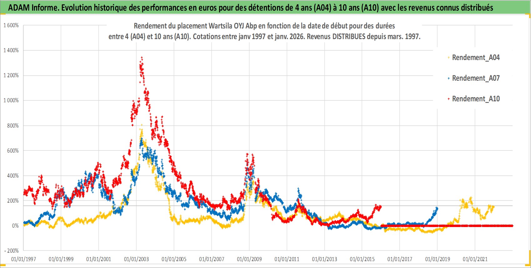 Site dédié aux investisseursPage dédiée sur site financeAnalyse des valorisations hebdomadaires de l'action Wartsila OYJ Abp. Cet actif est cote en EUR. Les valorisations couvrent les semaines 1997W01 a 2026W01. Les revenus de cet actif financier sont pris en compte depuis la semaine 1997W13. La note globale ESG de cet actif est estimee a 10.0 (apres rebasage entre 0 et 20).