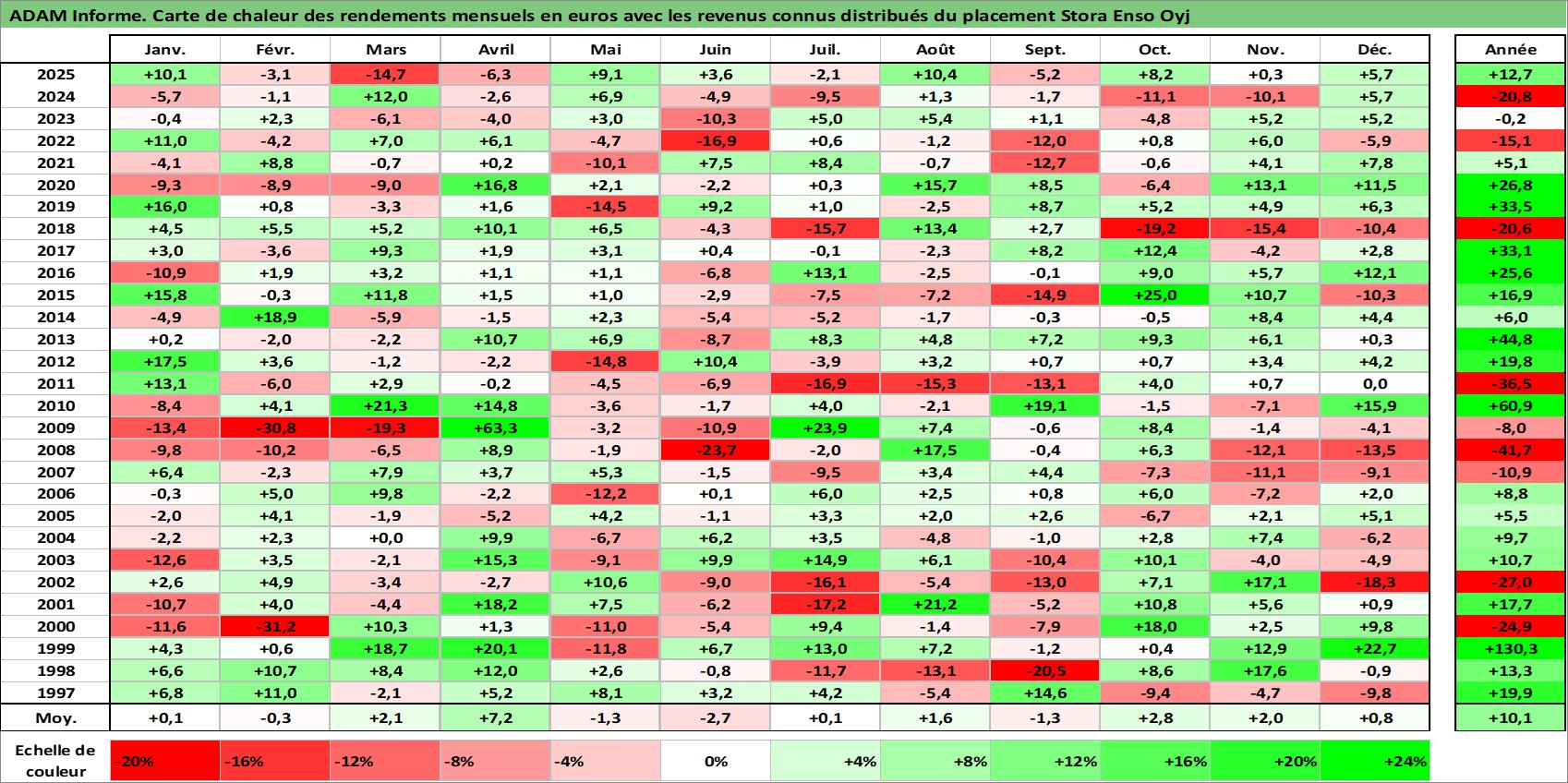 Dernière perfo 10 ans en %