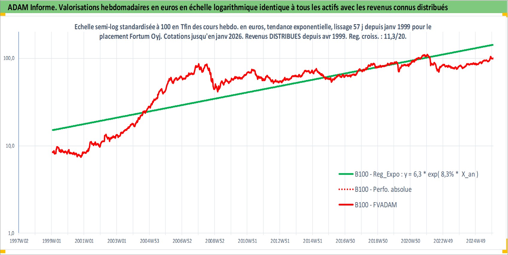 Site dédié aux investisseursPage dédiée sur site financeAnalyse des valorisations hebdomadaires de l'action Fortum Oyj. Cet actif est cote en EUR. Les valorisations couvrent les semaines 1999W04 a 2026W01. Les revenus de cet actif financier sont pris en compte depuis la semaine 1999W16. La note globale ESG de cet actif est estimee a 9.0 (apres rebasage entre 0 et 20).