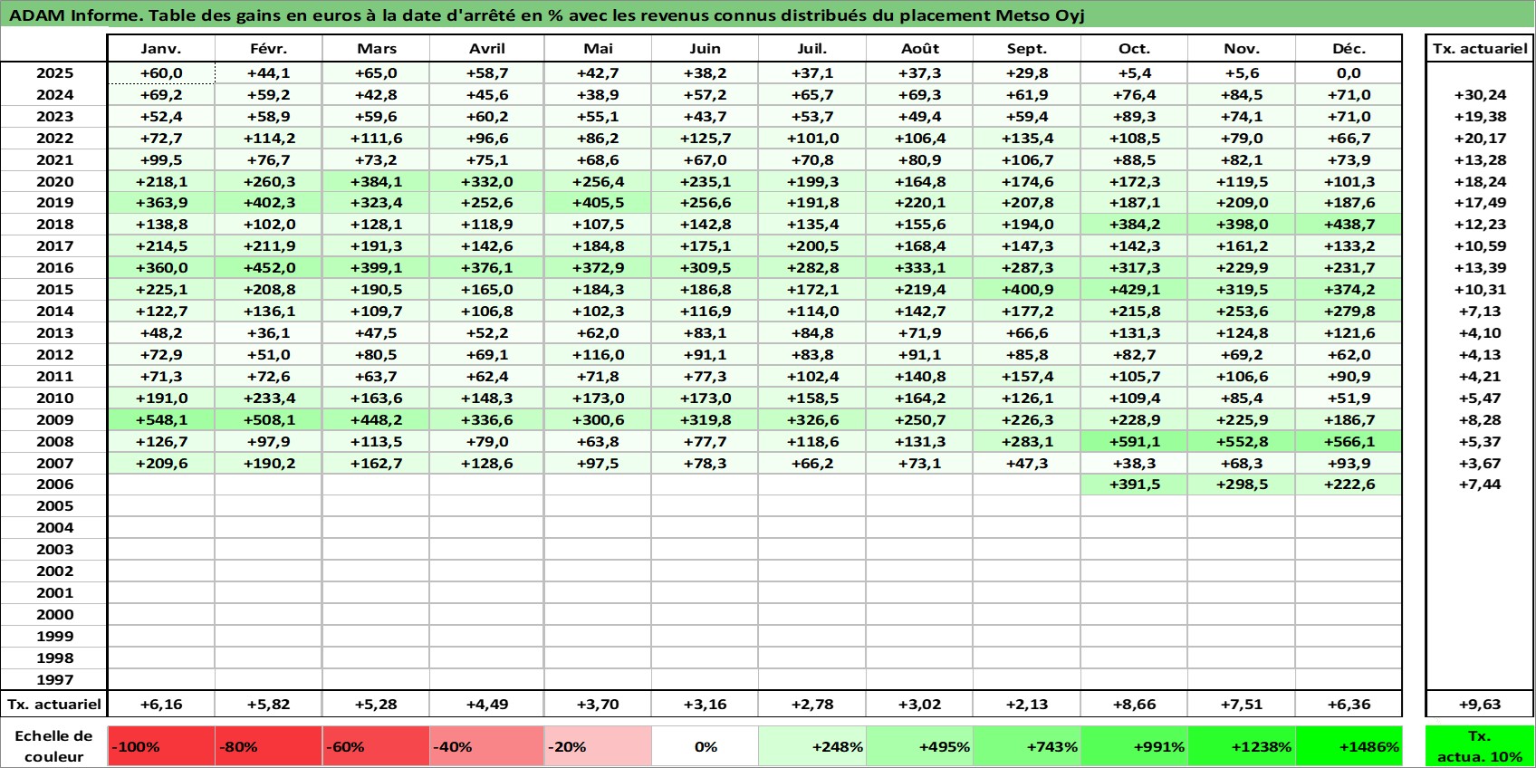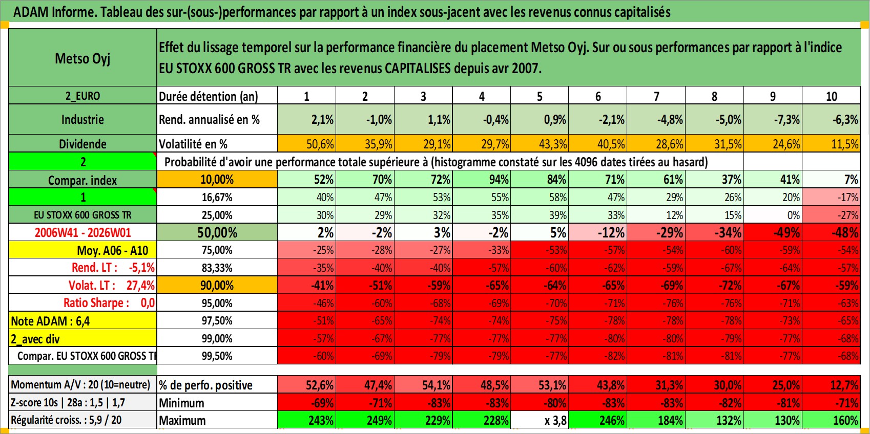 Site dédié aux investisseursPage dédiée sur site financeAnalyse des valorisations hebdomadaires de l'action Metso Oyj. Cet actif est cote en EUR. Les valorisations couvrent les semaines 2006W41 a 2026W01. Les revenus de cet actif financier sont pris en compte depuis la semaine 2007W14. La note ESG de cet actif n'est pas connue.