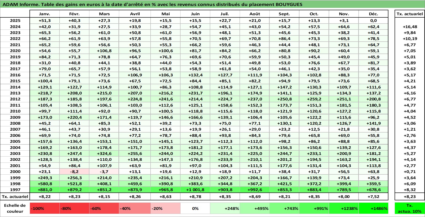 Site dédié aux investisseursPage dédiée sur site financeAnalyse des valorisations hebdomadaires de l'action BOUYGUES. Cet actif est cote en EUR. Les valorisations couvrent les semaines 1997W01 a 2026W01. Les revenus de cet actif financier sont pris en compte depuis la semaine 1997W28. La note globale ESG de cet actif est estimee a 3.0 (apres rebasage entre 0 et 20).