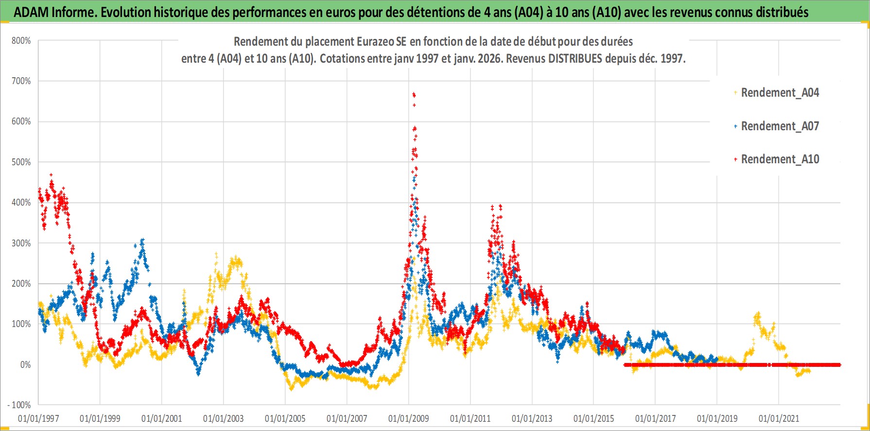 Site dédié aux investisseursPage dédiée sur site financeAnalyse des valorisations hebdomadaires de l'action Eurazeo SE. Cet actif est cote en EUR. Les valorisations couvrent les semaines 1997W01 a 2026W01. Les revenus de cet actif financier sont pris en compte depuis la semaine 1997W51. La note ESG de cet actif n'est pas connue.