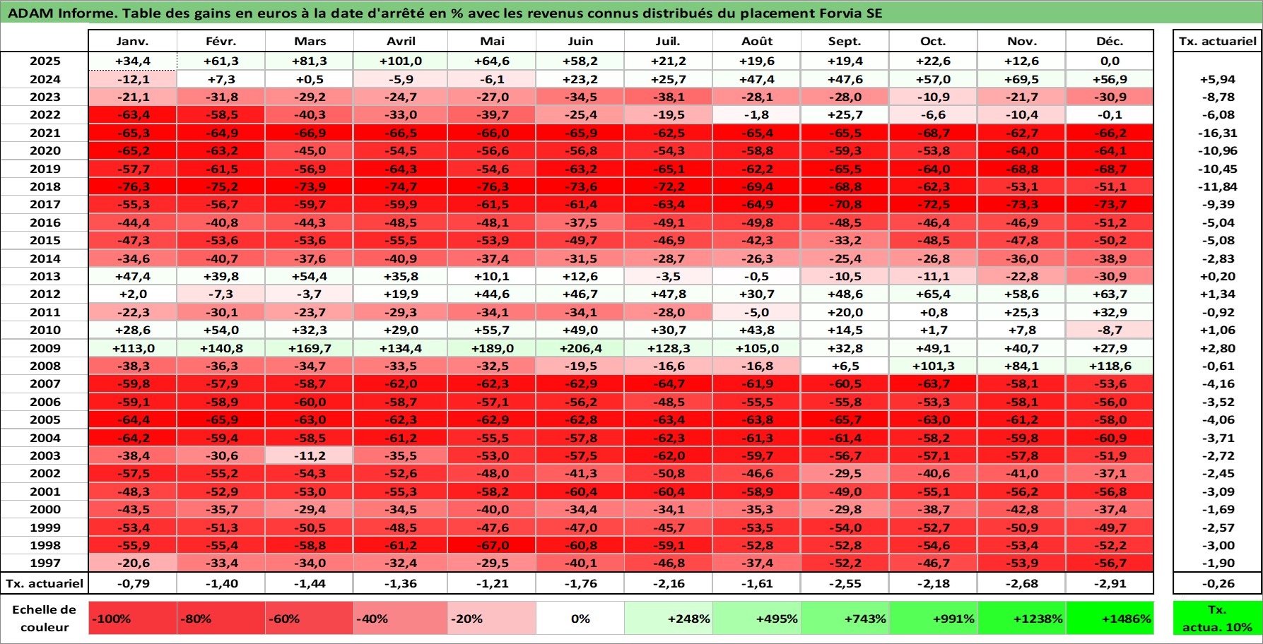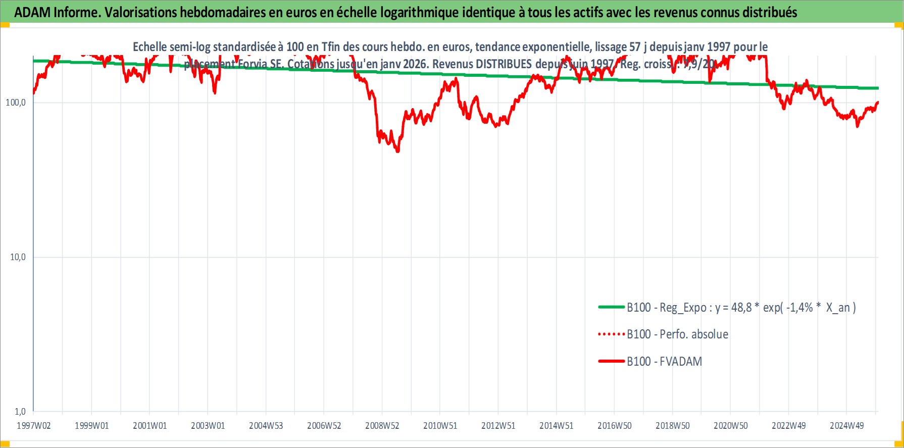 Site dédié aux investisseursPage dédiée sur site financeAnalyse des valorisations hebdomadaires de l'action Forvia SE. Cet actif est cote en EUR. Les valorisations couvrent les semaines 1997W01 a 2026W01. Les revenus de cet actif financier sont pris en compte depuis la semaine 1997W26. La note ESG de cet actif n'est pas connue.