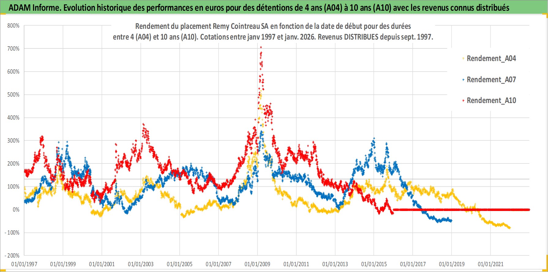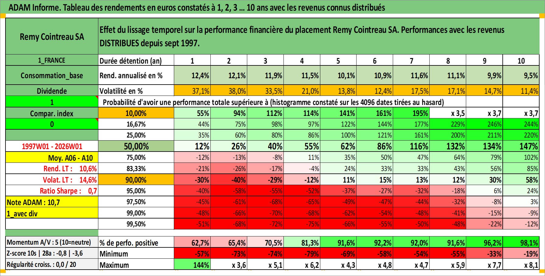 Site dédié aux investisseursPage dédiée sur site financeAnalyse des valorisations hebdomadaires de l'action Remy Cointreau SA. Cet actif est cote en EUR. Les valorisations couvrent les semaines 1997W01 a 2026W01. Les revenus de cet actif financier sont pris en compte depuis la semaine 1997W38. La note ESG de cet actif n'est pas connue.