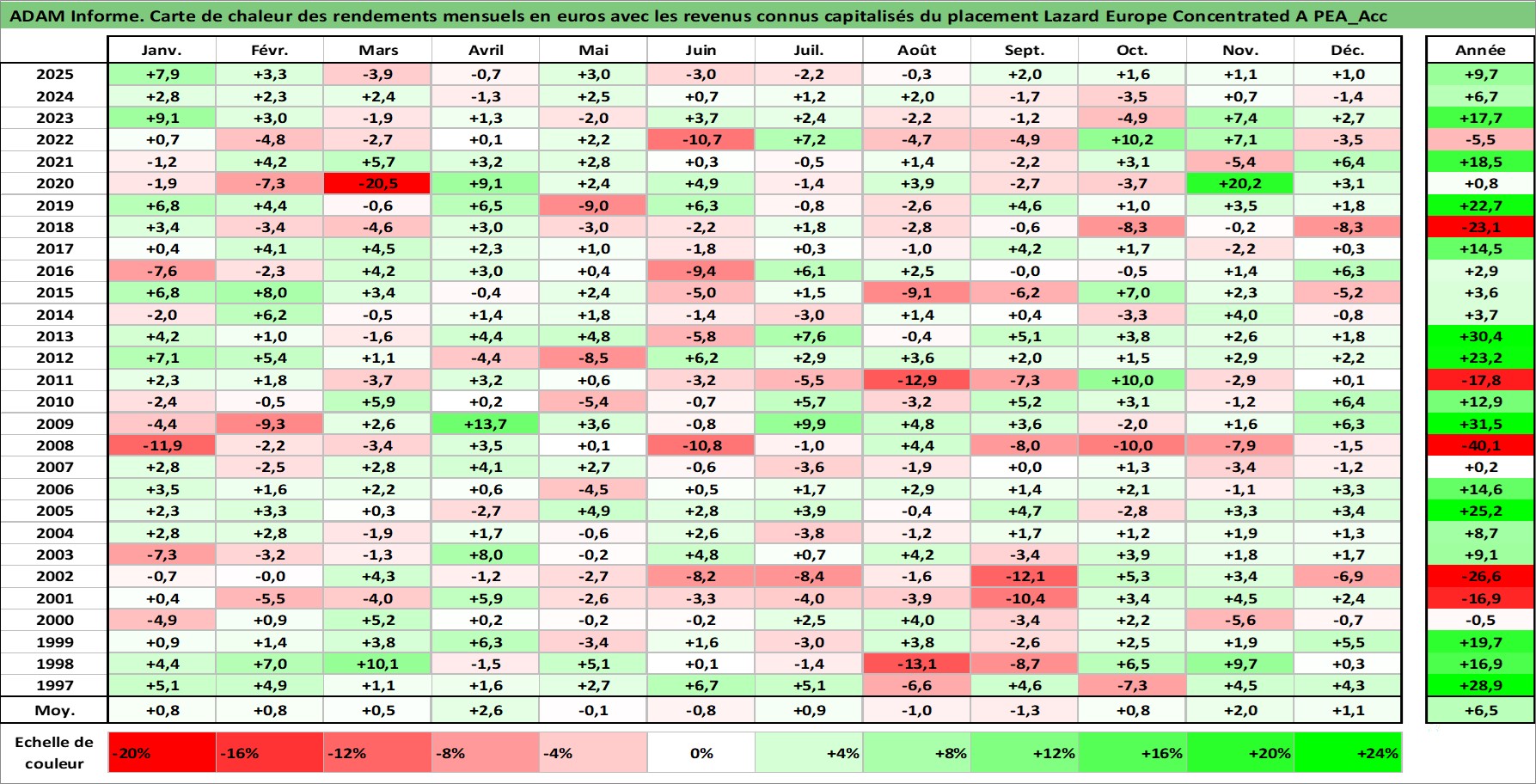 Dernière perfo 1 an en %