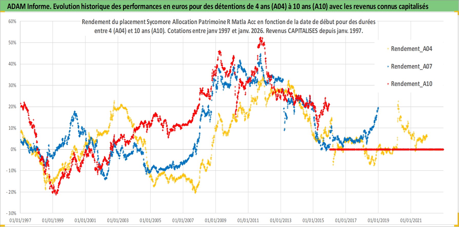 Site dédié aux investisseursPage dédiée sur site financeAnalyse des valorisations hebdomadaires du fonds Sycomore Allocation Patrimoine R Matla Acc. Cet actif est cote en EUR. Les valorisations couvrent les semaines 1997W01 a 2026W01. Les revenus de cet actif financier sont pris en compte depuis la semaine 1997W01. La note ESG de cet actif n'est pas connue.