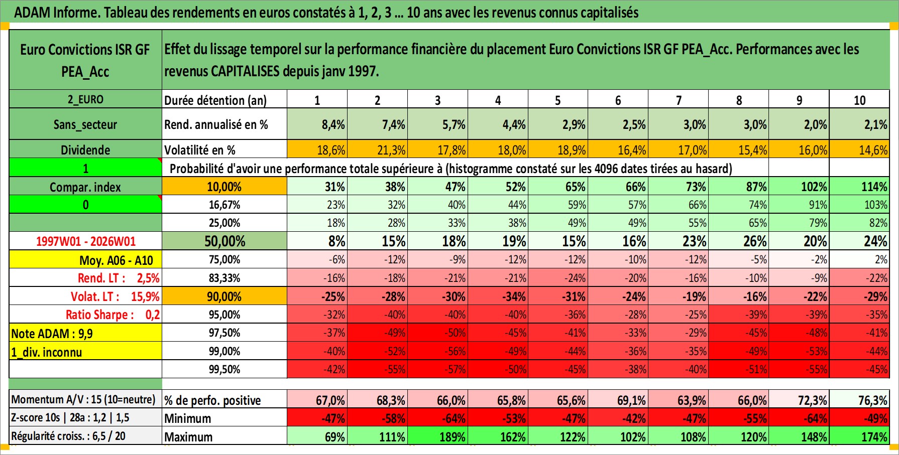 Site dédié aux investisseursPage dédiée sur site financeAnalyse des valorisations hebdomadaires du fonds Euro Convictions ISR GF PEA_Acc. Cet actif est cote en EUR. Les valorisations couvrent les semaines 1997W01 a 2026W01. Les revenus de cet actif financier sont pris en compte depuis la semaine 1997W01. La note ESG de cet actif n'est pas connue.