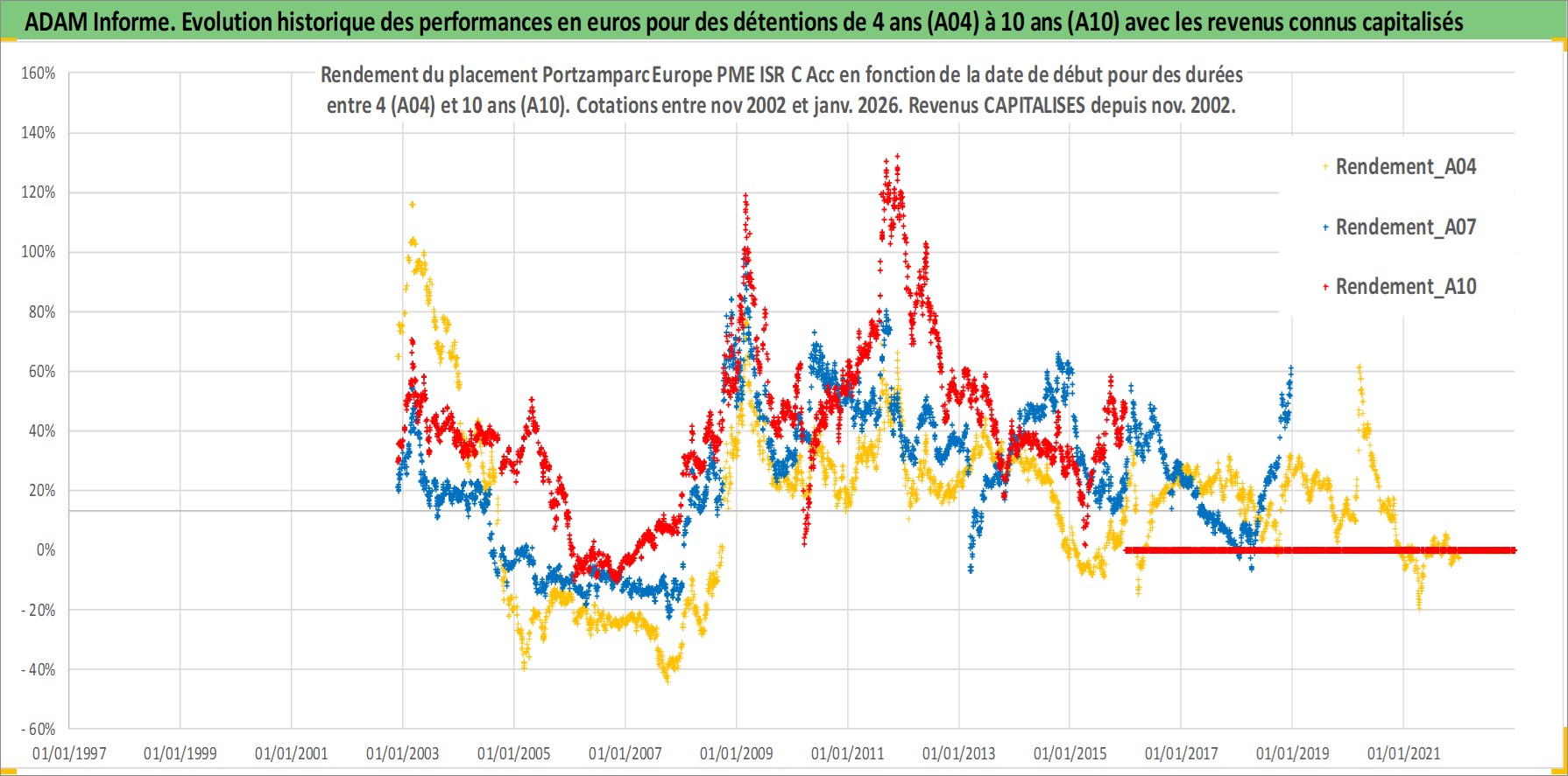 Site dédié aux investisseursPage dédiée sur site financeAnalyse des valorisations hebdomadaires du fonds Portzamparc Europe PME ISR C Acc. Cet actif est cote en EUR. Les valorisations couvrent les semaines 2002W47 a 2026W01. Les revenus de cet actif financier sont pris en compte depuis la semaine 2002W47. La note globale ESG de cet actif est estimee a 8.0 (apres rebasage entre 0 et 20).