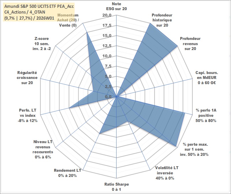 Site dédié aux investisseursPage dédiée sur site financeAnalyse des valorisations hebdomadaires du fonds Amundi S&P 500 UCITS ETF PEA_Acc. Cet actif est cote en EUR. Les valorisations couvrent les semaines 1997W01 a 2026W01. Les revenus de cet actif financier sont pris en compte depuis la semaine 1997W01. La note ESG de cet actif n'est pas connue.