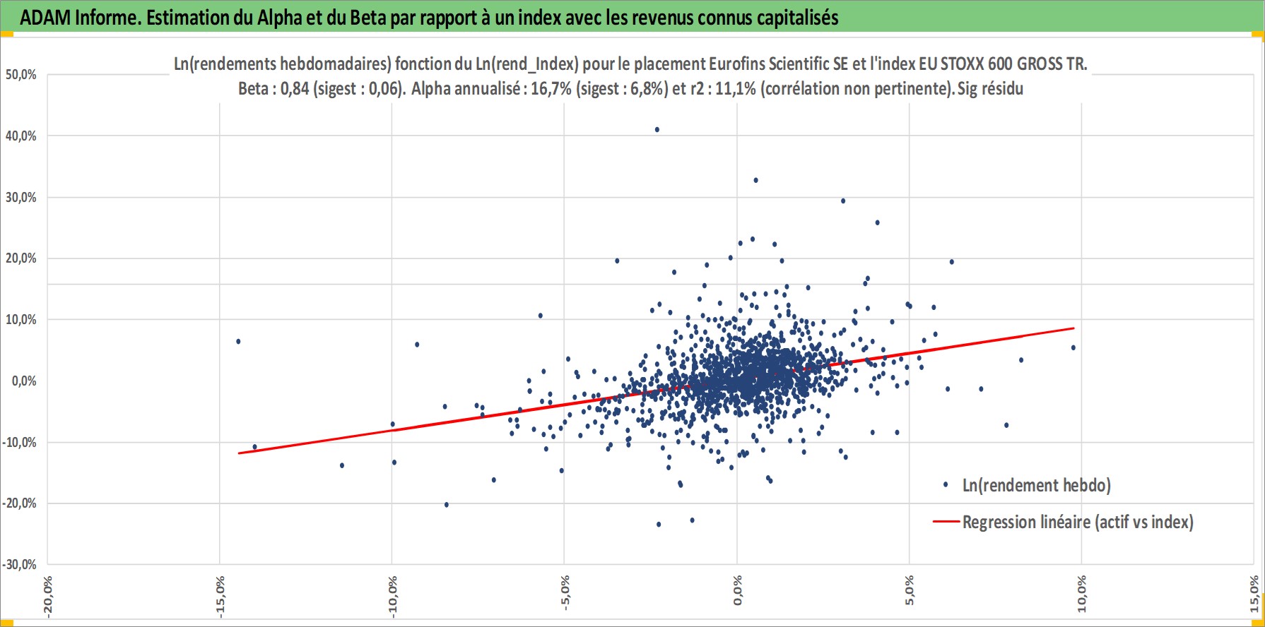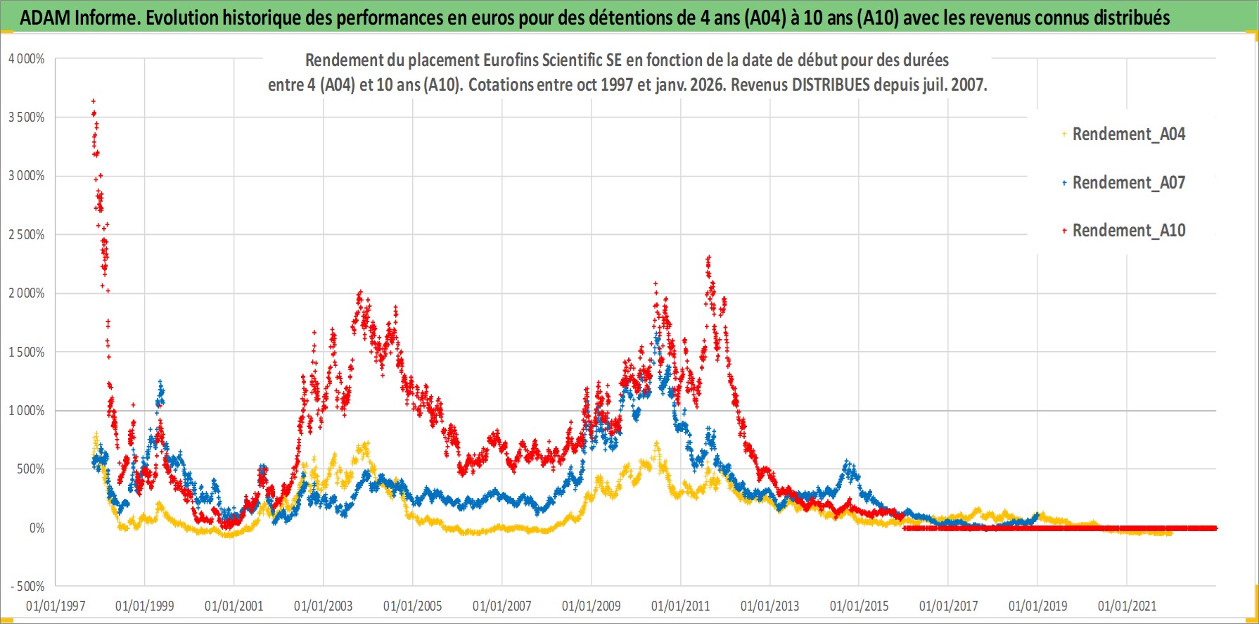 Site dédié aux investisseursPage dédiée sur site financeAnalyse des valorisations hebdomadaires de l'action Eurofins Scientific SE. Cet actif est cote en EUR. Les valorisations couvrent les semaines 1997W44 a 2026W01. Les revenus de cet actif financier sont pris en compte depuis la semaine 2007W30. La note globale ESG de cet actif est estimee a 12.0 (apres rebasage entre 0 et 20).