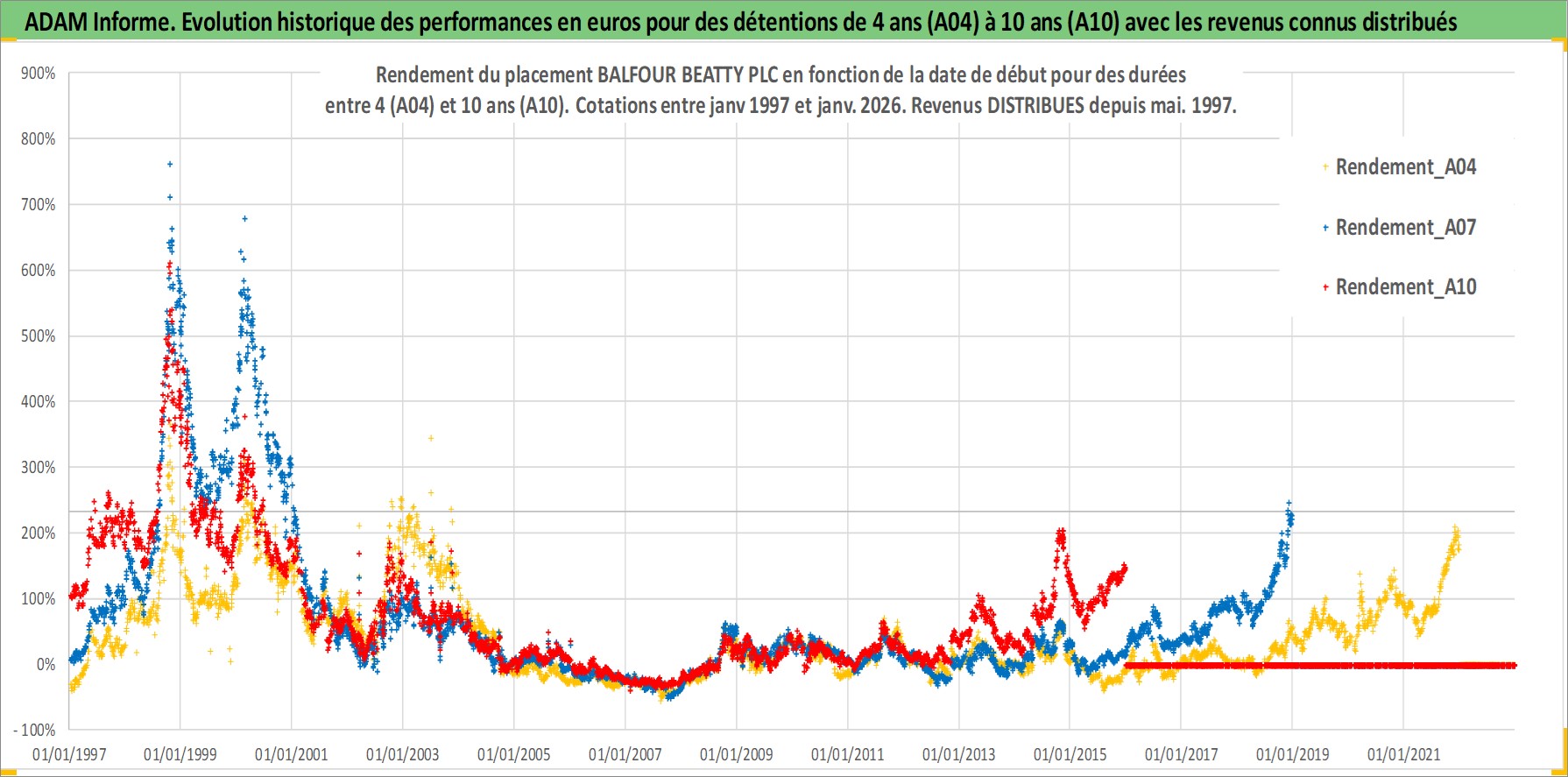 Site dédié aux investisseursPage dédiée sur site financeAnalyse des valorisations hebdomadaires de l'action BALFOUR BEATTY PLC. Cet actif est cote en GBX. Les valorisations sont en contrevaleur EURO et couvrent les semaines 1997W01 a 2026W01. Les revenus de cet actif financier sont pris en compte depuis la semaine 1997W19. La note ESG de cet actif n'est pas connue.
