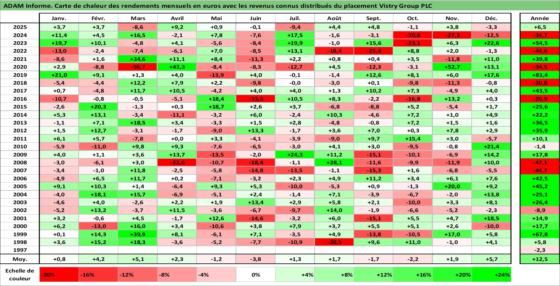Site dédié aux investisseursPage dédiée sur site financeAnalyse des valorisations hebdomadaires de l'action Vistry Group PLC. Cet actif est cote en GBX. Les valorisations sont en contrevaleur EURO et couvrent les semaines 1997W50 a 2026W01. Les revenus de cet actif financier sont pris en compte depuis la semaine 1998W41. La note ESG de cet actif n'est pas connue.