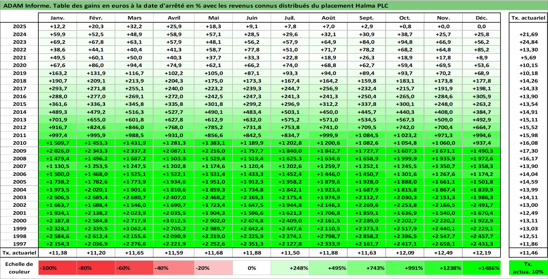 Dernière perfo 10 ans en %