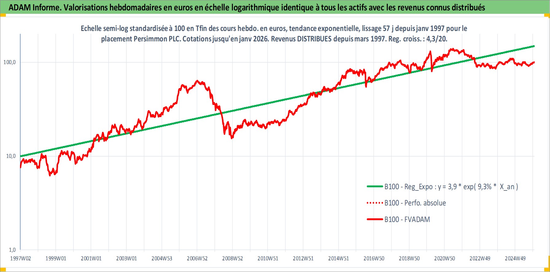Site dédié aux investisseursPage dédiée sur site financeAnalyse des valorisations hebdomadaires de l'action Persimmon PLC. Cet actif est cote en GBX. Les valorisations sont en contrevaleur EURO et couvrent les semaines 1997W01 a 2026W01. Les revenus de cet actif financier sont pris en compte depuis la semaine 1997W13. La note globale ESG de cet actif est estimee a 12.0 (apres rebasage entre 0 et 20).