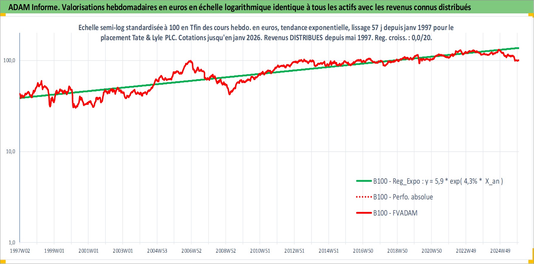 Site dédié aux investisseursPage dédiée sur site financeAnalyse des valorisations hebdomadaires de l'action Tate & Lyle PLC. Cet actif est cote en GBX. Les valorisations sont en contrevaleur EURO et couvrent les semaines 1997W01 a 2026W01. Les revenus de cet actif financier sont pris en compte depuis la semaine 1997W21. La note ESG de cet actif n'est pas connue.