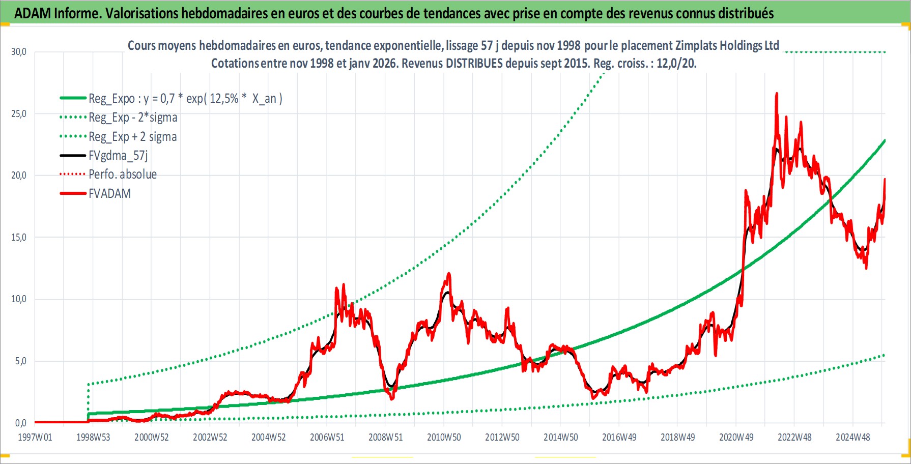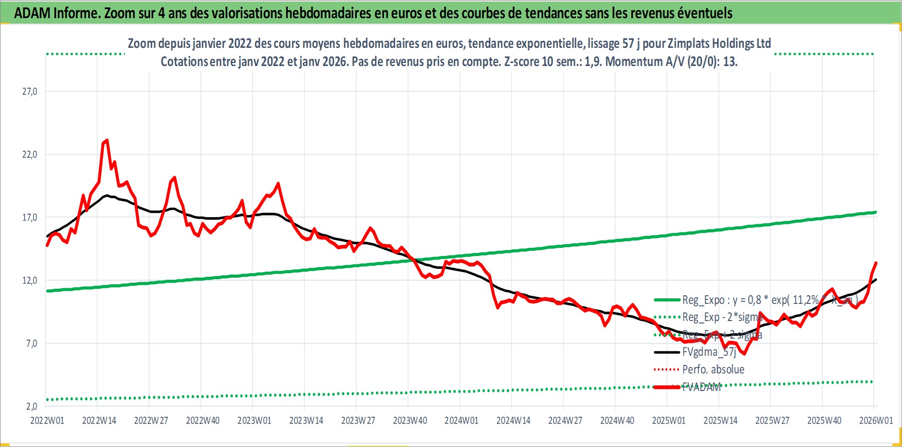 Site dédié aux investisseursPage dédiée sur site financeAnalyse des valorisations hebdomadaires de l'action Zimplats Holdings Ltd. Cet actif est cote en AUD. Les valorisations sont en contrevaleur EURO et couvrent les semaines 1998W45 a 2026W01. Les revenus de cet actif financier sont pris en compte depuis la semaine 2015W37. La note ESG de cet actif n'est pas connue.