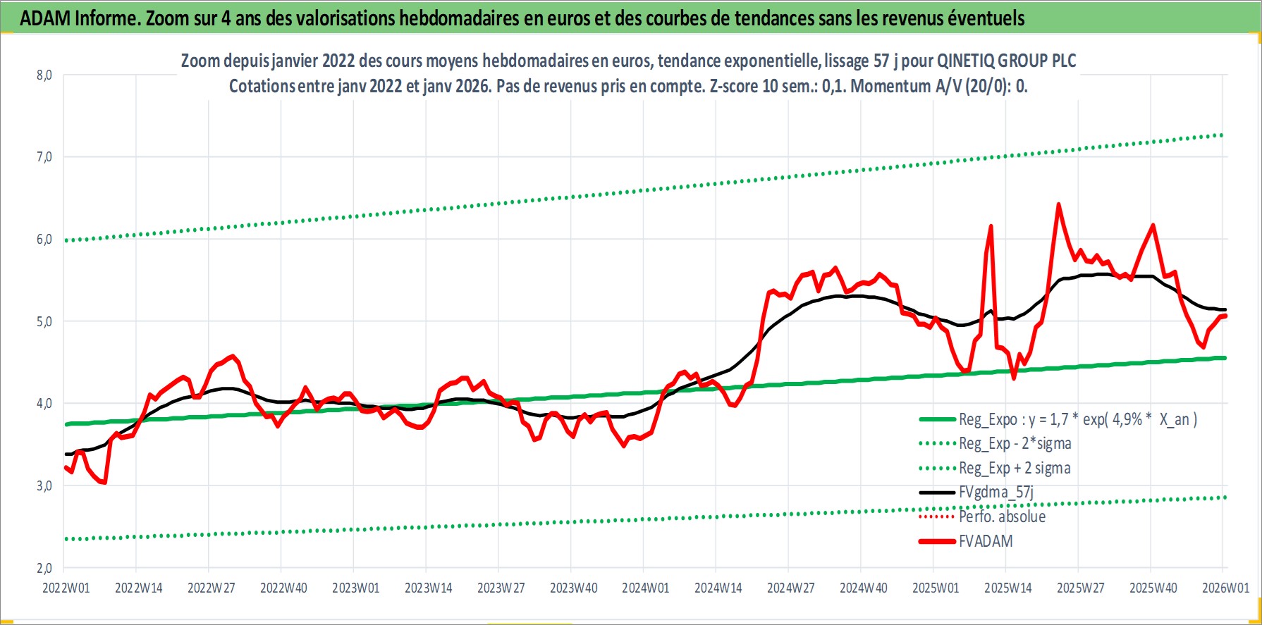 Site dédié aux investisseursPage dédiée sur site financeAnalyse des valorisations hebdomadaires de l'action QINETIQ GROUP PLC. Cet actif est cote en GBX. Les valorisations sont en contrevaleur EURO et couvrent les semaines 2006W06 a 2026W01. Les revenus de cet actif financier sont pris en compte depuis la semaine 2006W31. La note ESG de cet actif n'est pas connue.