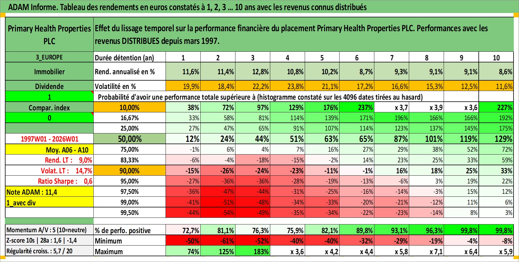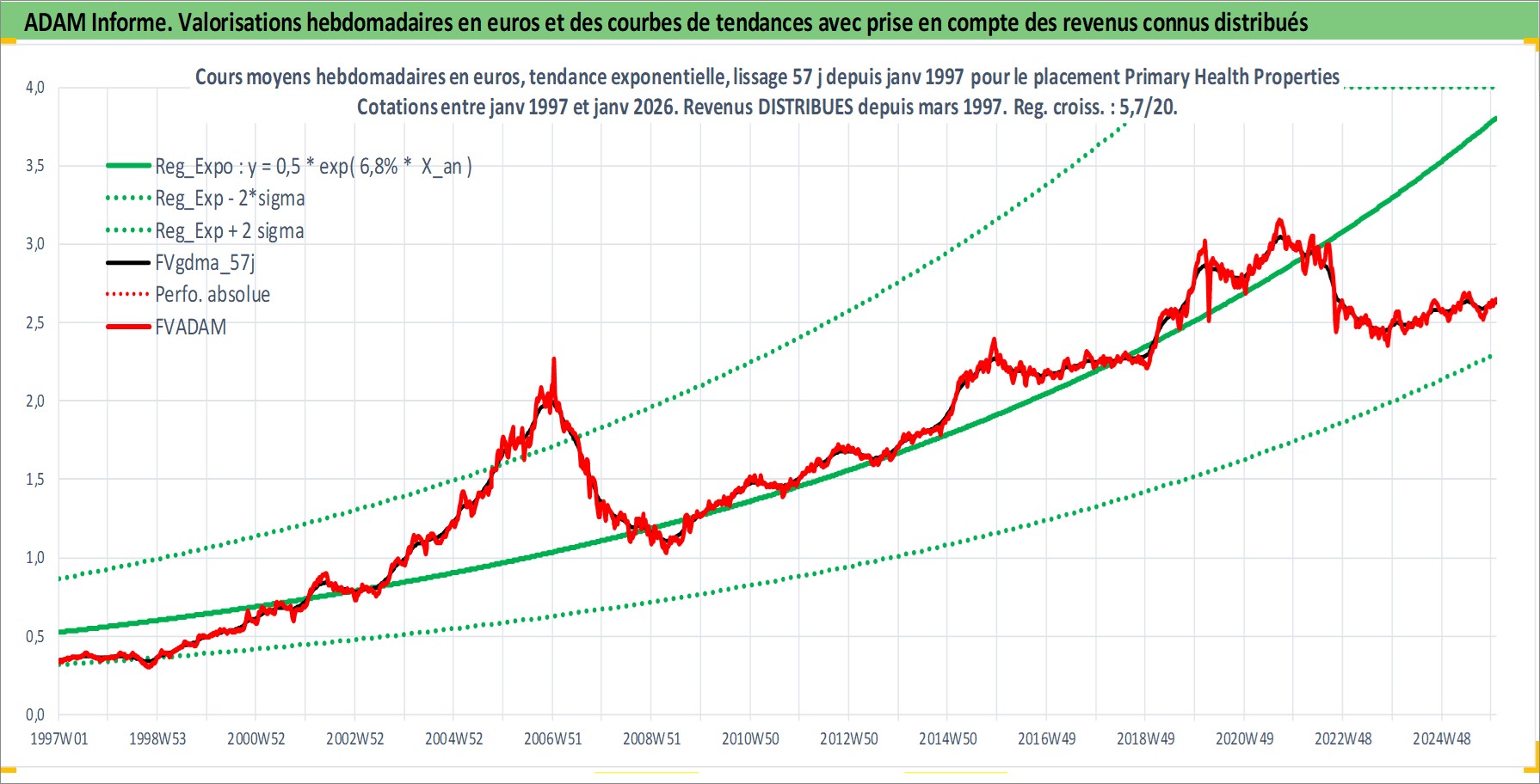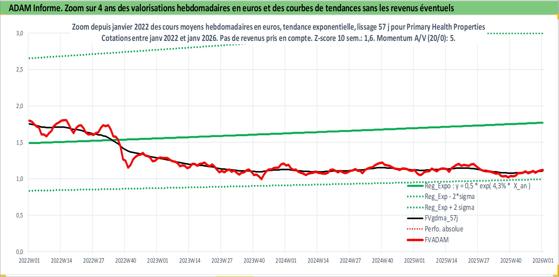 Site dédié aux investisseursPage dédiée sur site financeAnalyse des valorisations hebdomadaires de l'action Primary Health Properties PLC. Cet actif est cote en GBX. Les valorisations sont en contrevaleur EURO et couvrent les semaines 1997W01 a 2026W01. Les revenus de cet actif financier sont pris en compte depuis la semaine 1997W11. La note ESG de cet actif n'est pas connue.