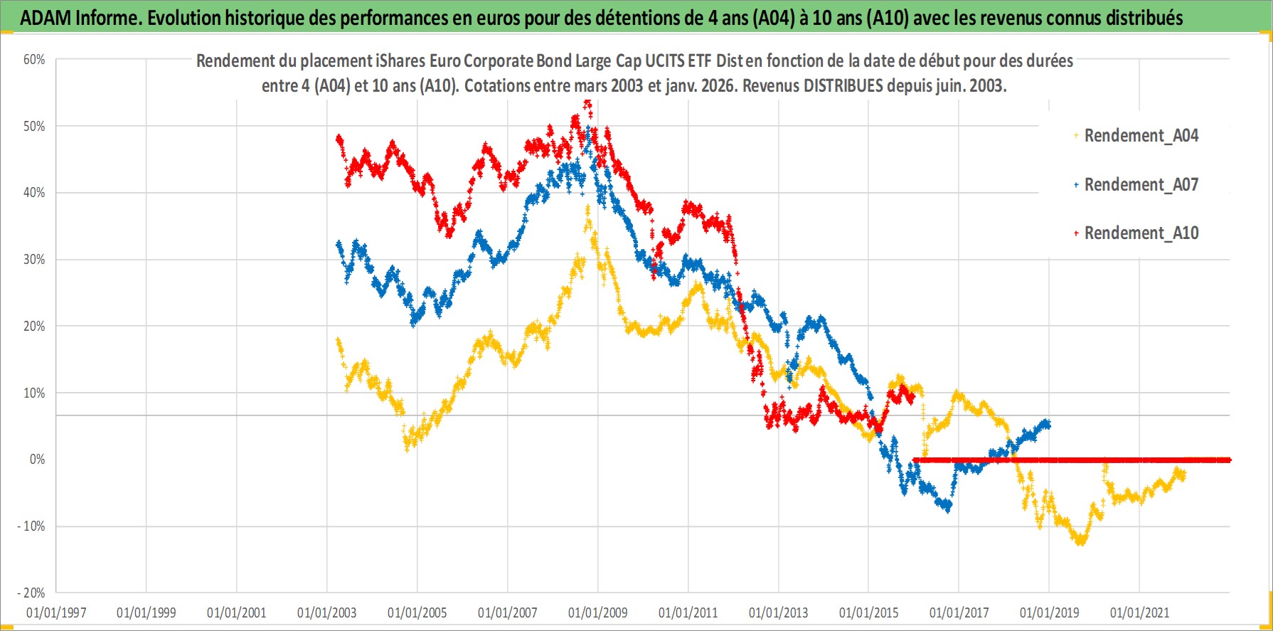 Site dédié aux investisseursPage dédiée sur site financeAnalyse des valorisations hebdomadaires du fonds iShares Euro Corporate Bond Large Cap UCITS ETF Dist. Cet actif est cote en EUR. Les valorisations couvrent les semaines 2003W12 a 2026W01. Les revenus de cet actif financier sont pris en compte depuis la semaine 2003W23. La note ESG de cet actif n'est pas connue.