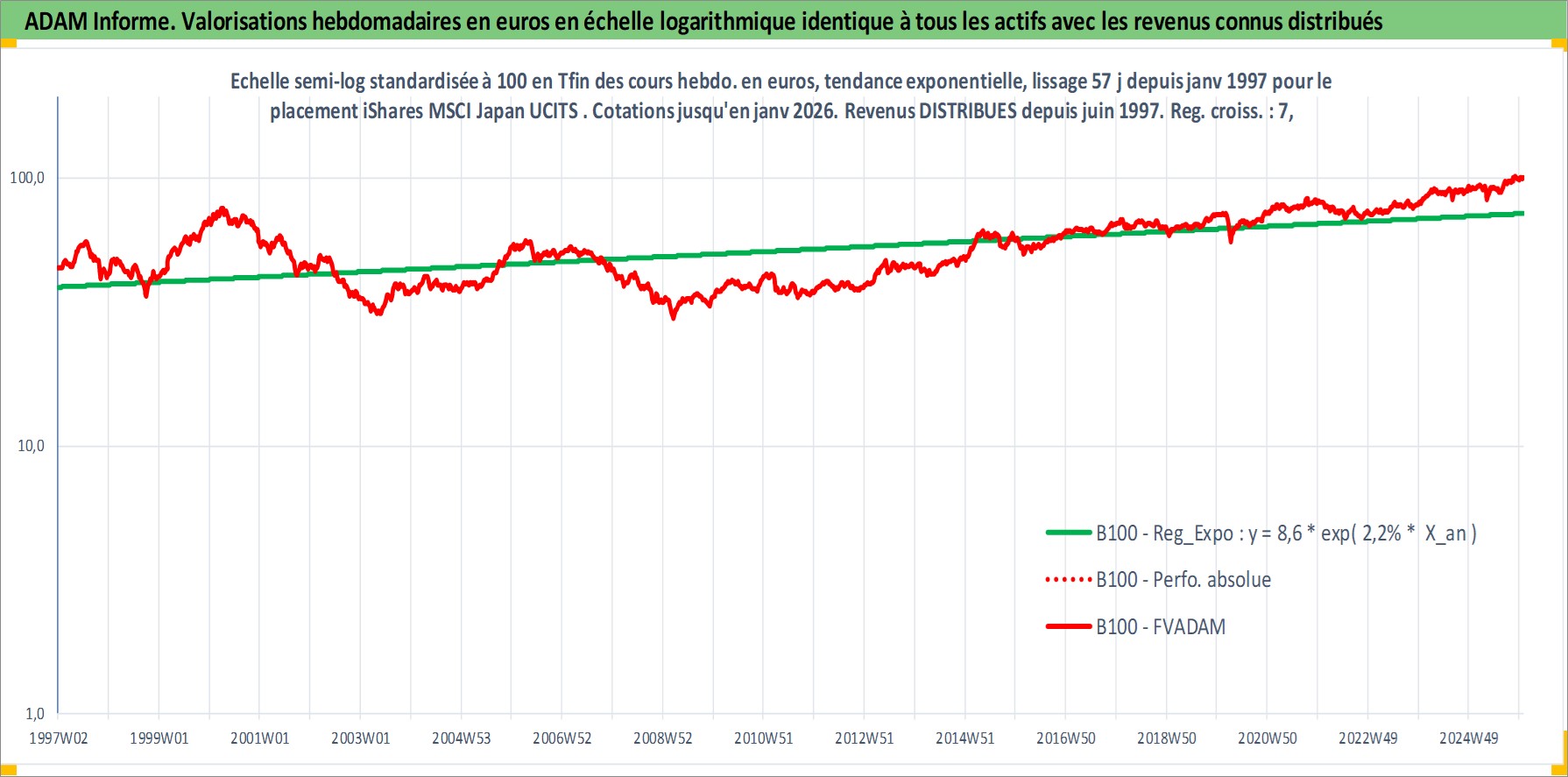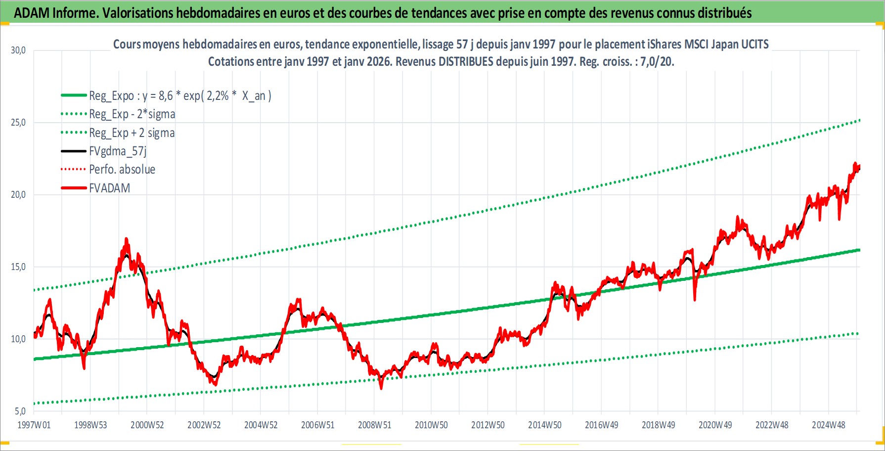 Site dédié aux investisseursPage dédiée sur site financeAnalyse des valorisations hebdomadaires du fonds iShares MSCI Japan UCITS ETF USD Dist. Cet actif est cote en USD. Les valorisations sont en contrevaleur EURO et couvrent les semaines 1997W01 a 2026W01. Les revenus de cet actif financier sont pris en compte depuis la semaine 1997W26. La note ESG de cet actif n'est pas connue.