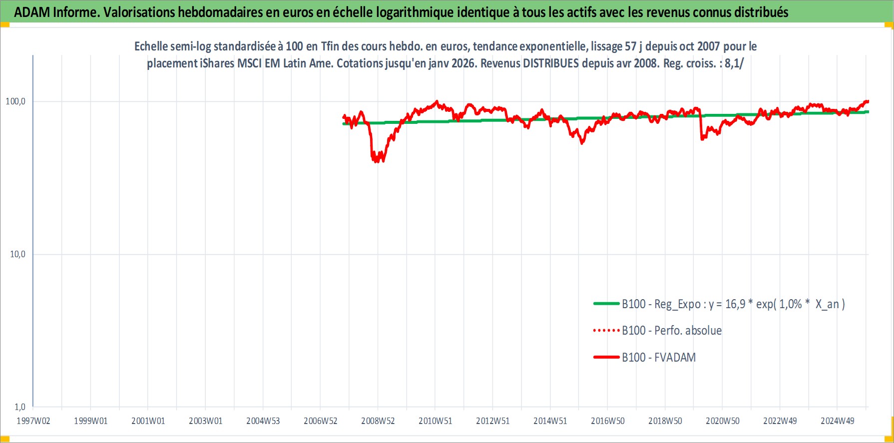 Site dédié aux investisseursPage dédiée sur site financeAnalyse des valorisations hebdomadaires du fonds iShares MSCI EM Latin America UCITS ETF Dist. Cet actif est cote en USD. Les valorisations sont en contrevaleur EURO et couvrent les semaines 2007W42 a 2026W01. Les revenus de cet actif financier sont pris en compte depuis la semaine 2008W18. La note ESG de cet actif n'est pas connue.