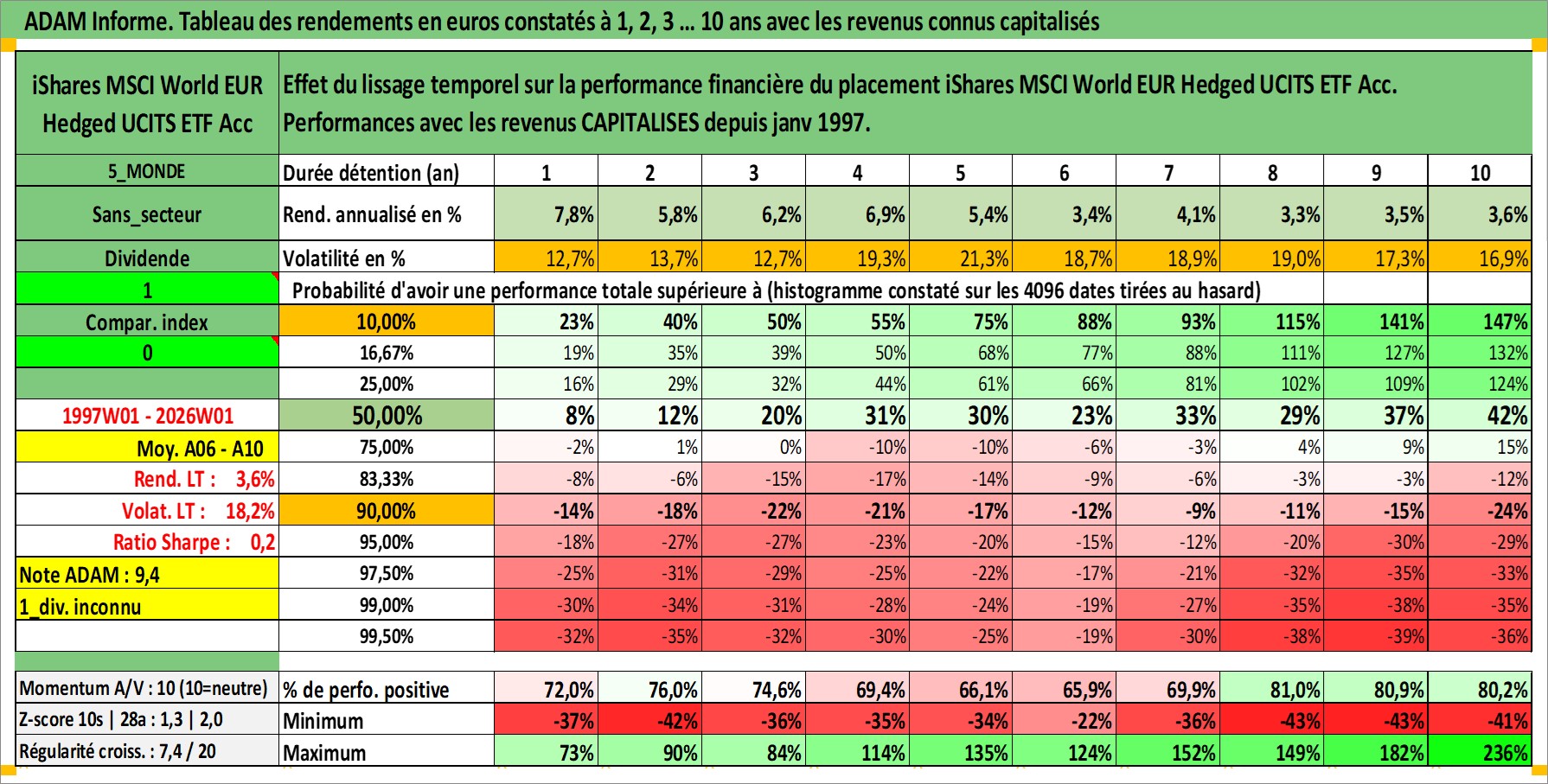Site dédié aux investisseursPage dédiée sur site financeAnalyse des valorisations hebdomadaires du fonds iShares MSCI World EUR Hedged UCITS ETF Acc. Cet actif est cote en EUR. Les valorisations couvrent les semaines 1997W01 a 2026W01. Les revenus de cet actif financier sont pris en compte depuis la semaine 1997W01. La note ESG de cet actif n'est pas connue.