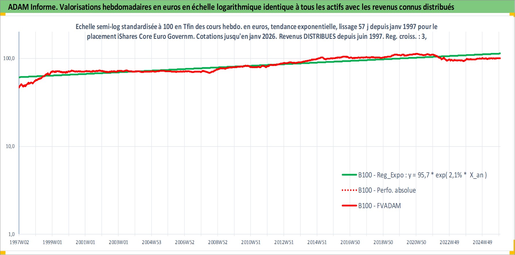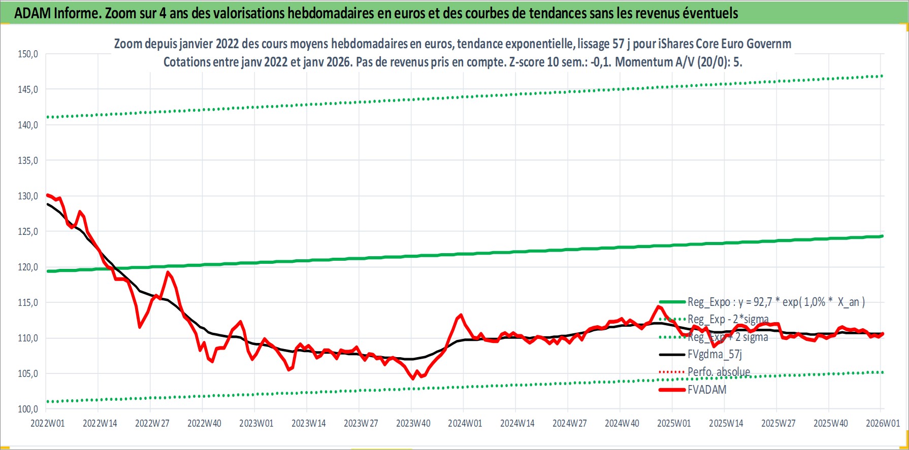 Site dédié aux investisseursPage dédiée sur site financeAnalyse des valorisations hebdomadaires du fonds iShares Core Euro Government Bond UCITS ETF Dist. Cet actif est cote en EUR. Les valorisations couvrent les semaines 1997W01 a 2026W01. Les revenus de cet actif financier sont pris en compte depuis la semaine 1997W24. La note ESG de cet actif n'est pas connue.