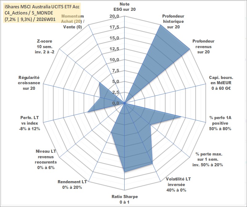 Site dédié aux investisseursPage dédiée sur site financeAnalyse des valorisations hebdomadaires du fonds iShares MSCI Australia UCITS ETF Acc. Cet actif est cote en USD. Les valorisations sont en contrevaleur EURO et couvrent les semaines 1997W01 a 2026W01. Les revenus de cet actif financier sont pris en compte depuis la semaine 1997W01. La note ESG de cet actif n'est pas connue.