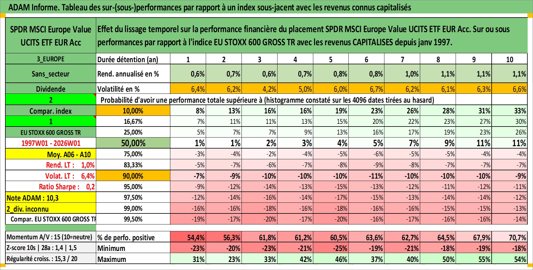 Site dédié aux investisseursPage dédiée sur site financeAnalyse des valorisations hebdomadaires du fonds SPDR MSCI Europe Value UCITS ETF EUR Acc. Cet actif est cote en EUR. Les valorisations couvrent les semaines 1997W01 a 2026W01. Les revenus de cet actif financier sont pris en compte depuis la semaine 1997W01. La note ESG de cet actif n'est pas connue.