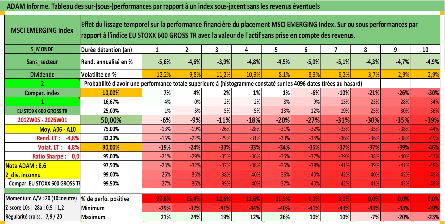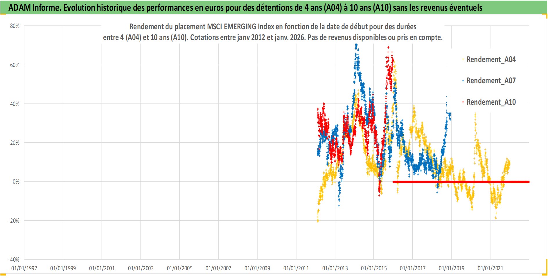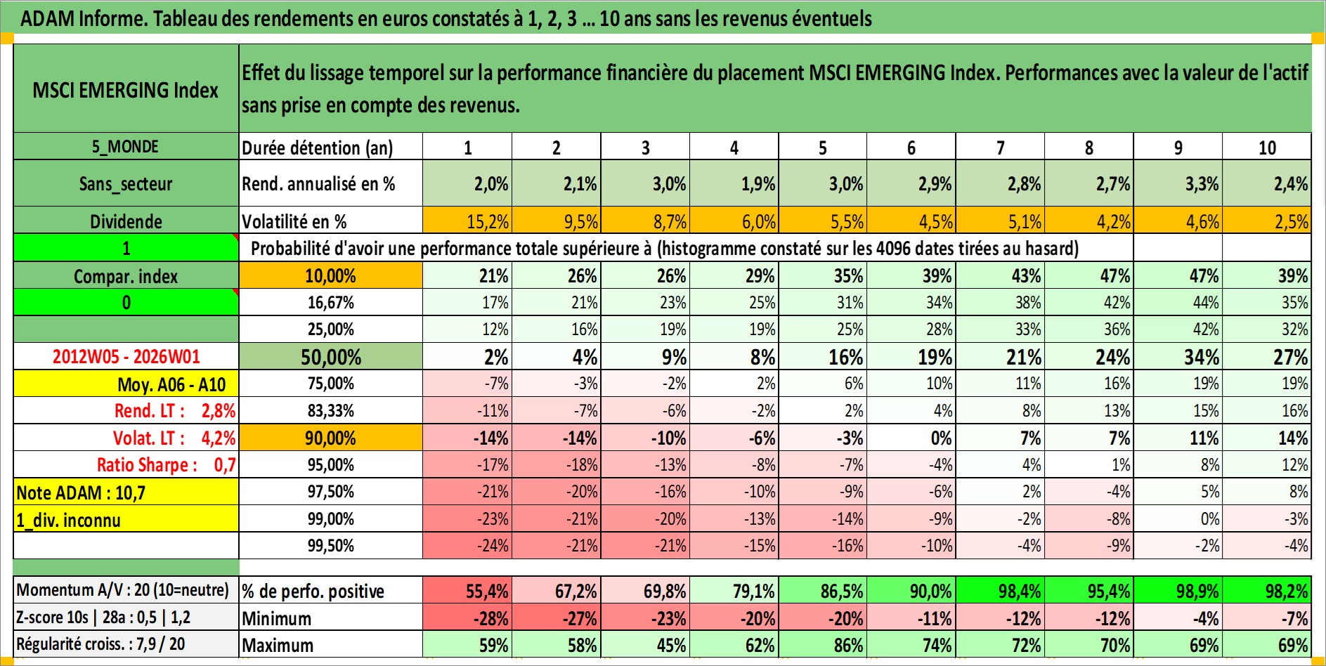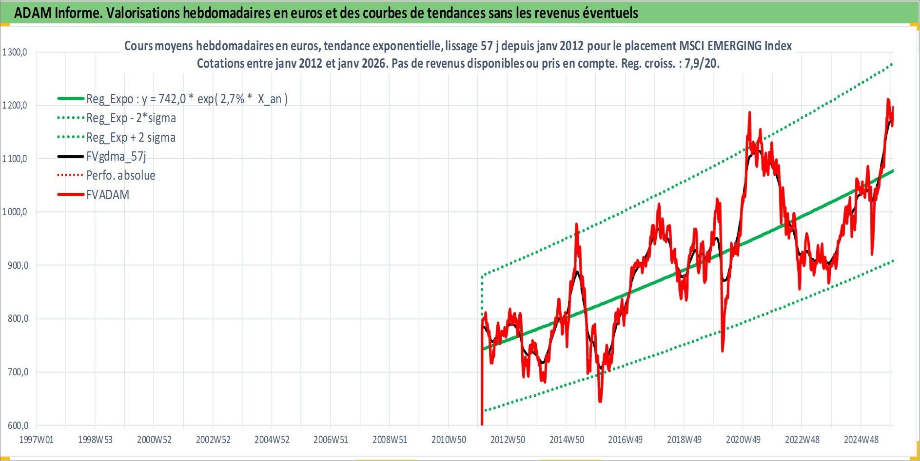 Site dédié aux investisseursPage dédiée sur site financeAnalyse des valorisations hebdomadaires de l'actif MSCI EMERGING Index. Cet actif est cote en USD. Les valorisations sont en contrevaleur EURO et couvrent les semaines 2012W05 a 2026W01. Les revenus de cet actif financier ne sont pas connus car non existants ou non disponibles sur le site Yahoo Finance. La note ESG de cet actif n'est pas connue.