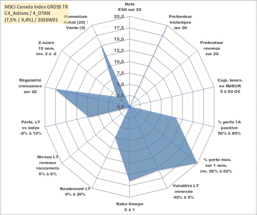 Site dédié aux investisseursPage dédiée sur site financeAnalyse des valorisations hebdomadaires de l'actif MSCI Canada Index GROSS TR. Cet actif est cote en USD. Les valorisations sont en contrevaleur EURO et couvrent les semaines 1997W01 a 2026W01. Les revenus de cet actif financier ne sont pas connus car non existants ou non disponibles sur le site Yahoo Finance. La note ESG de cet actif n'est pas connue.
