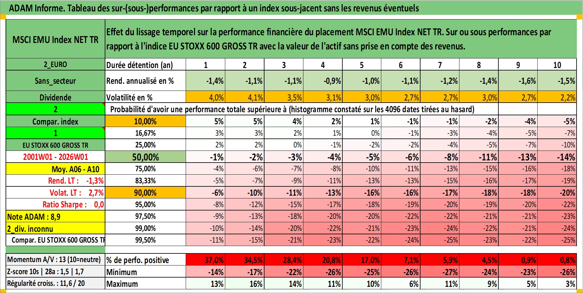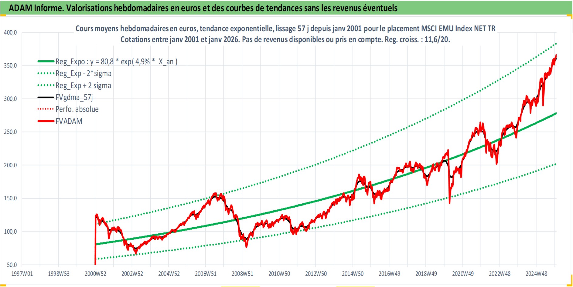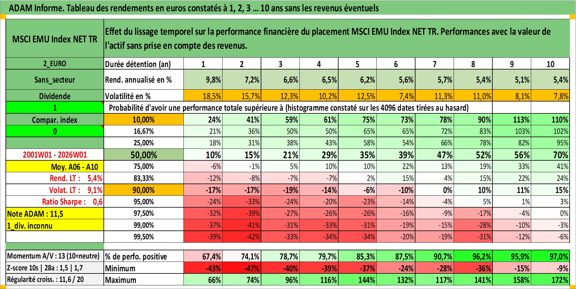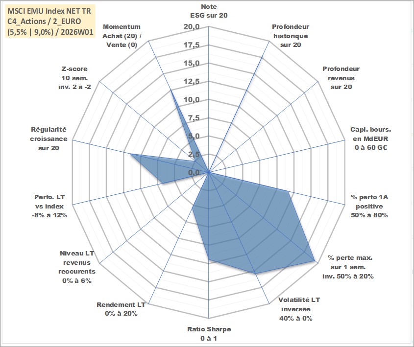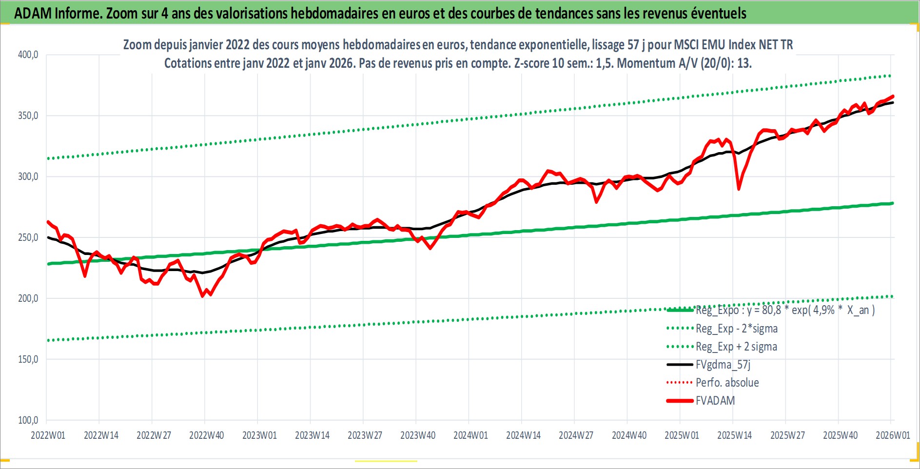 Site dédié aux investisseursPage dédiée sur site financeAnalyse des valorisations hebdomadaires de l'actif MSCI EMU Index NET TR. Cet actif est cote en EUR. Les valorisations couvrent les semaines 2001W01 a 2026W01. Les revenus de cet actif financier ne sont pas connus car non existants ou non disponibles sur le site Yahoo Finance. La note ESG de cet actif n'est pas connue.