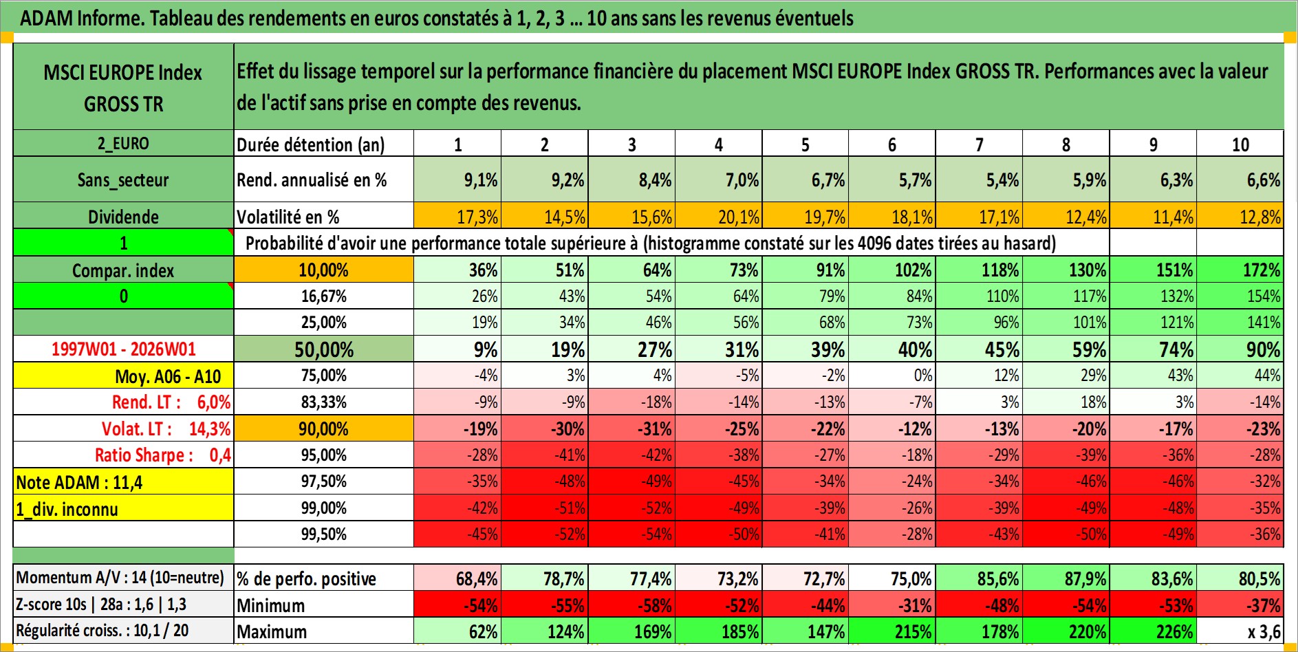 Site dédié aux investisseursPage dédiée sur site financeAnalyse des valorisations hebdomadaires de l'actif MSCI EUROPE Index GROSS TR. Cet actif est cote en USD. Les valorisations sont en contrevaleur EURO et couvrent les semaines 1997W01 a 2026W01. Les revenus de cet actif financier ne sont pas connus car non existants ou non disponibles sur le site Yahoo Finance. La note ESG de cet actif n'est pas connue.