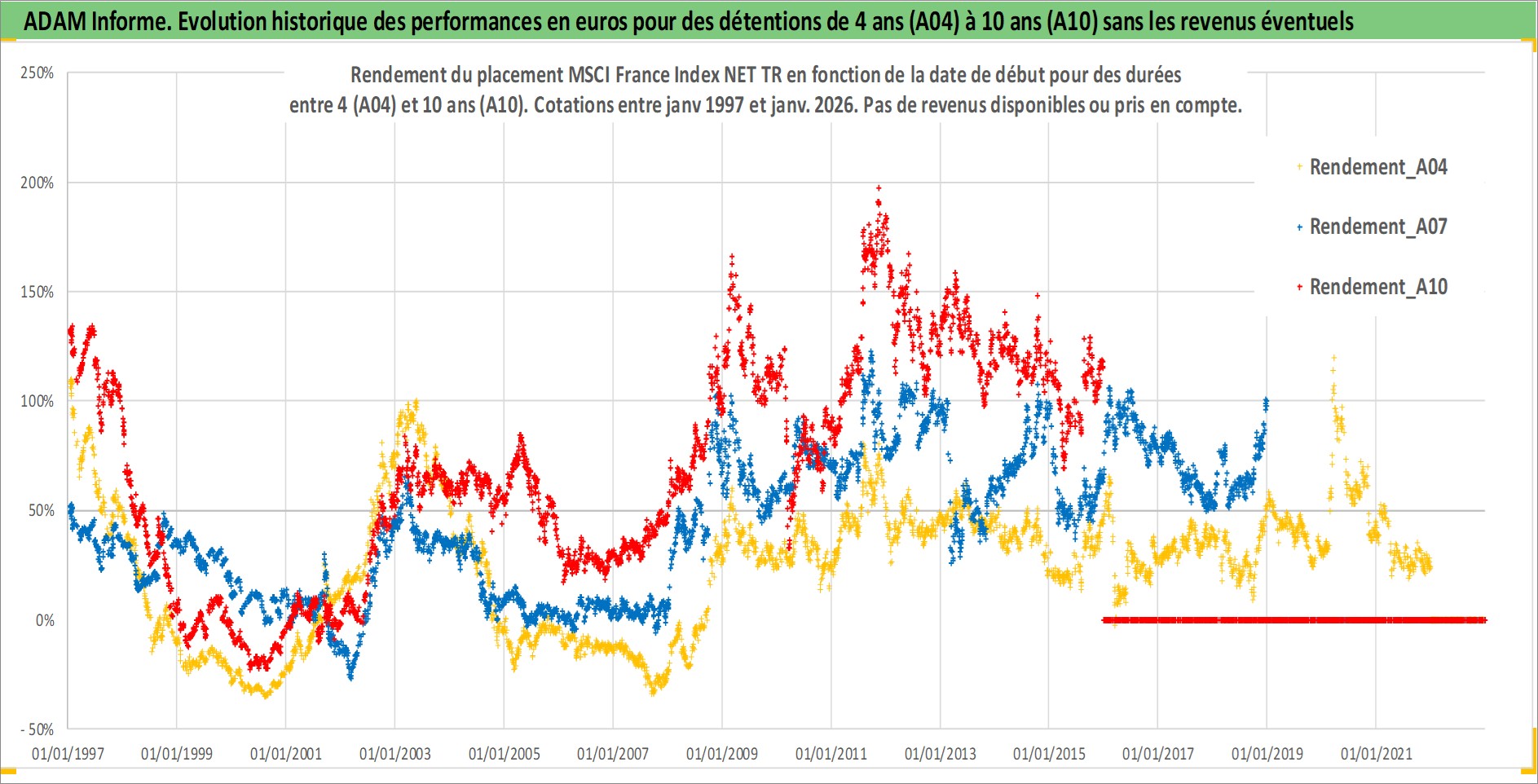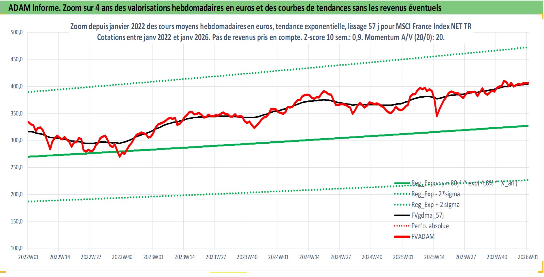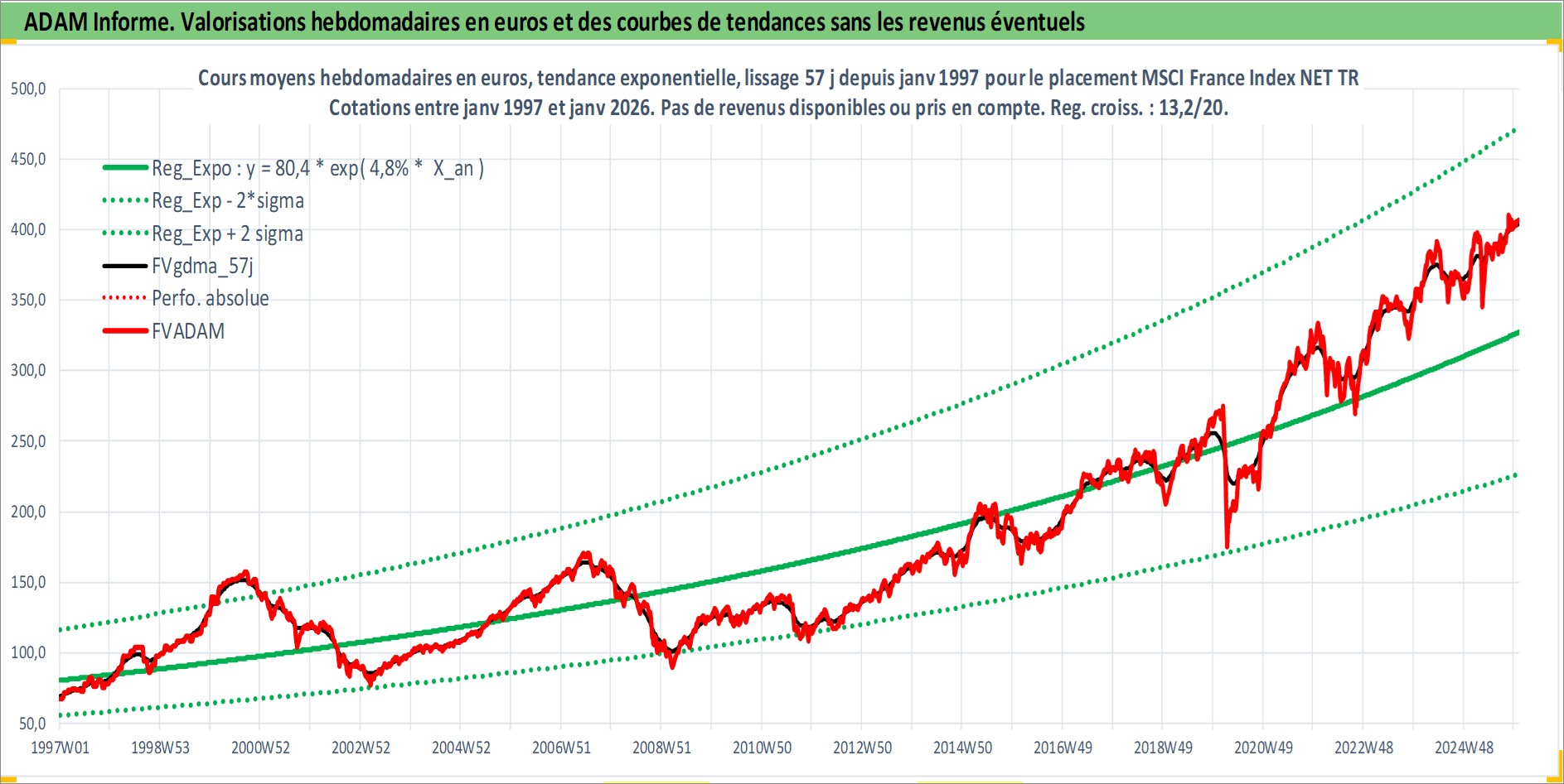 Site dédié aux investisseursPage dédiée sur site financeAnalyse des valorisations hebdomadaires de l'actif MSCI France Index NET TR. Cet actif est cote en EUR. Les valorisations couvrent les semaines 1997W01 a 2026W01. Les revenus de cet actif financier ne sont pas connus car non existants ou non disponibles sur le site Yahoo Finance. La note ESG de cet actif n'est pas connue.