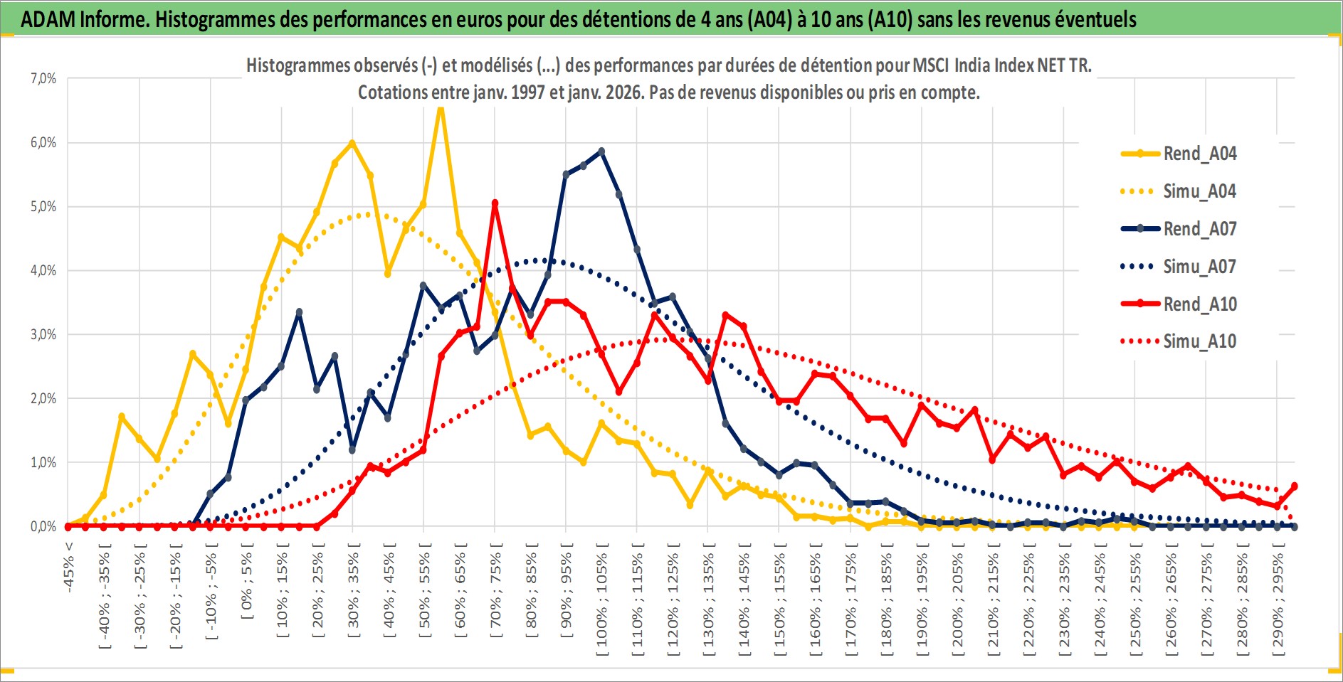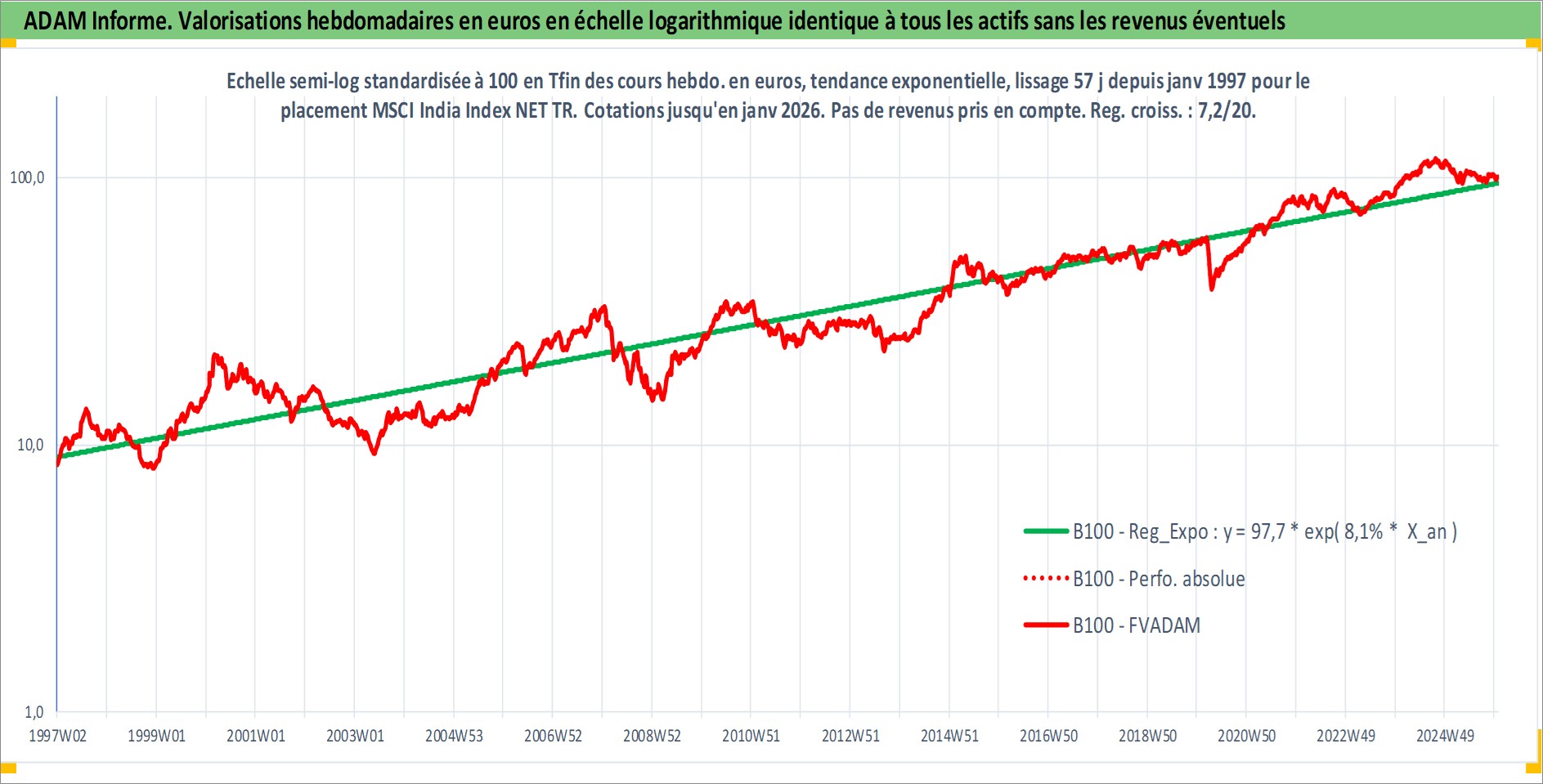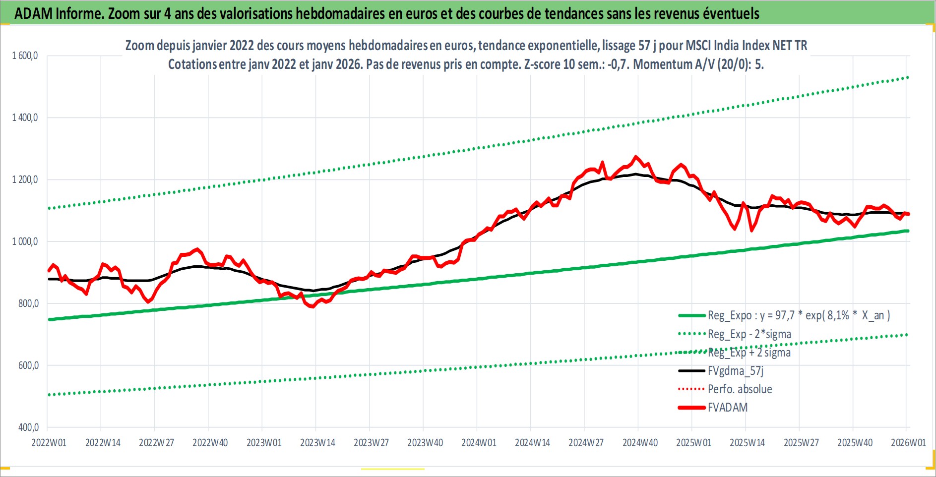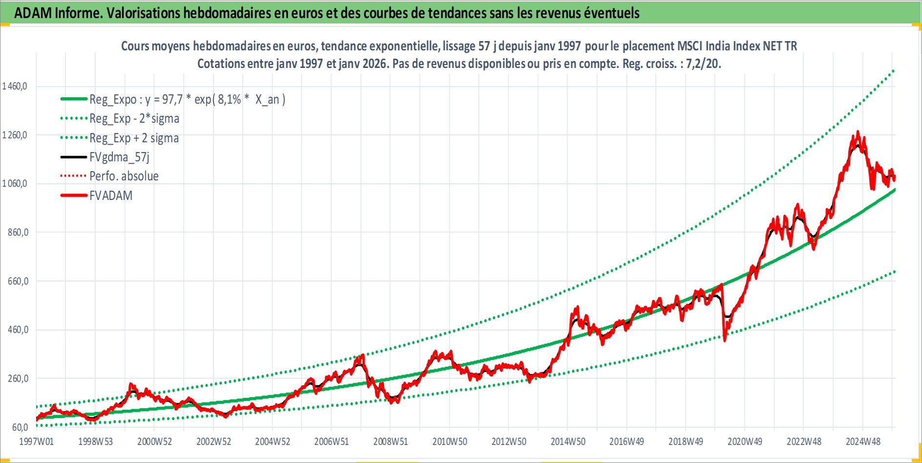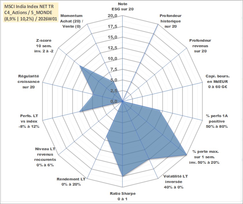 Site dédié aux investisseursPage dédiée sur site financeAnalyse des valorisations hebdomadaires de l'actif MSCI India Index NET TR. Cet actif est cote en USD. Les valorisations sont en contrevaleur EURO et couvrent les semaines 1997W01 a 2026W01. Les revenus de cet actif financier ne sont pas connus car non existants ou non disponibles sur le site Yahoo Finance. La note ESG de cet actif n'est pas connue.
